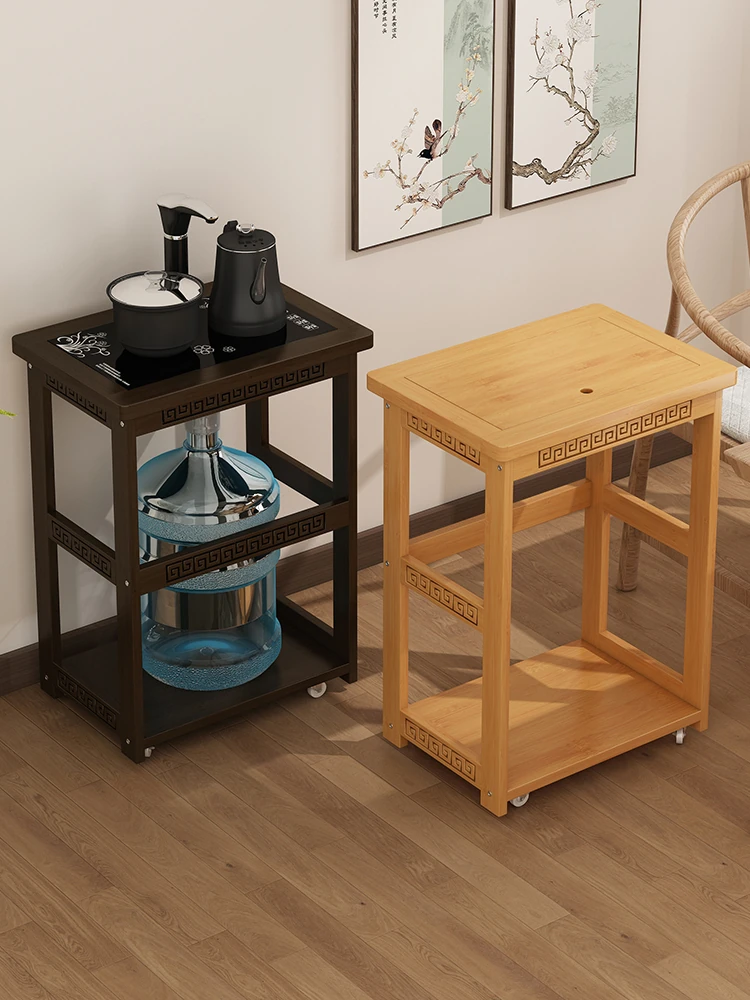 実木製のリビング用移動式ティーテーブルセット - 小型住宅向け全自動ティーセット、電気ケトル付きで、手軽にお茶を楽しむ!