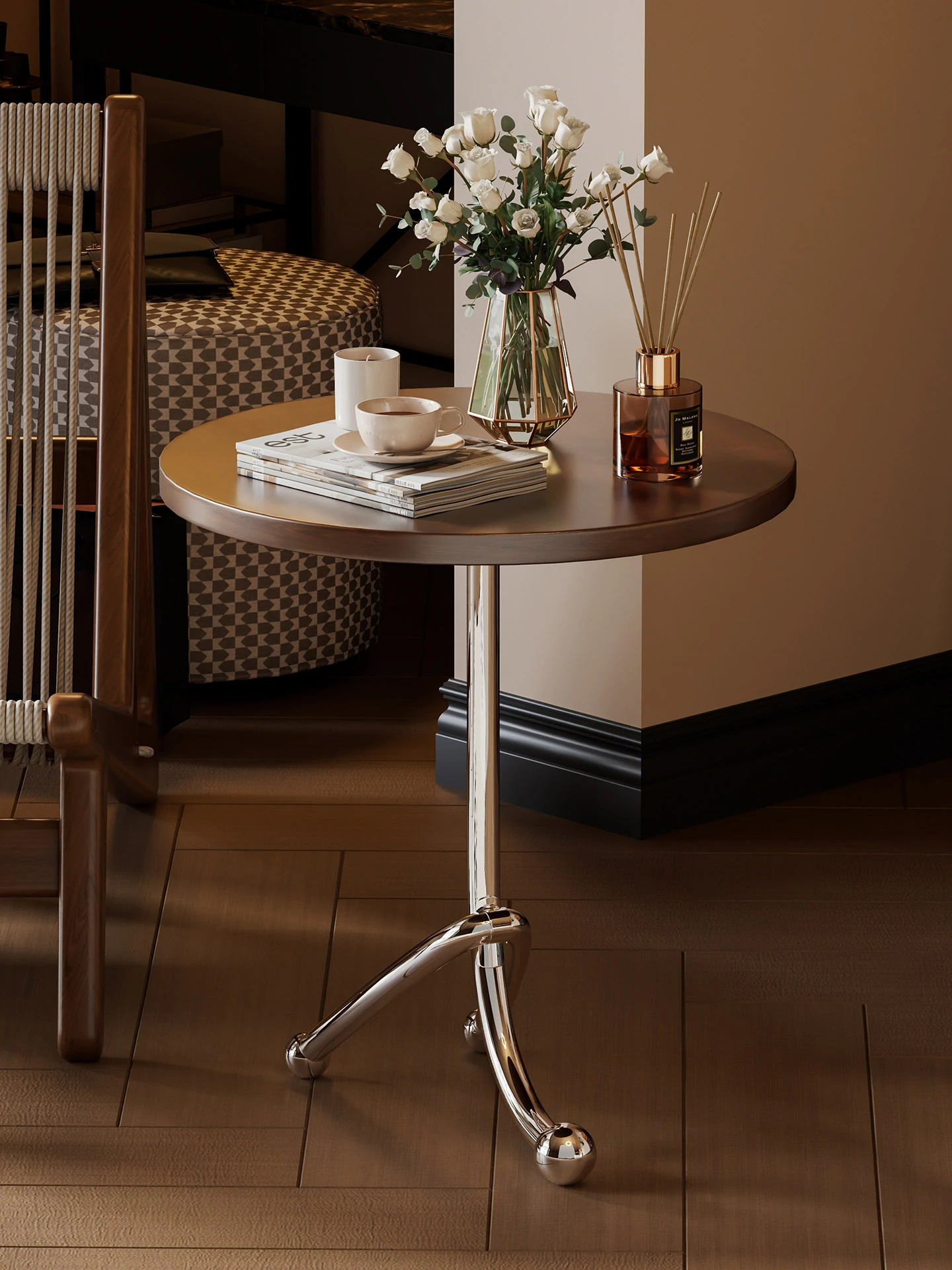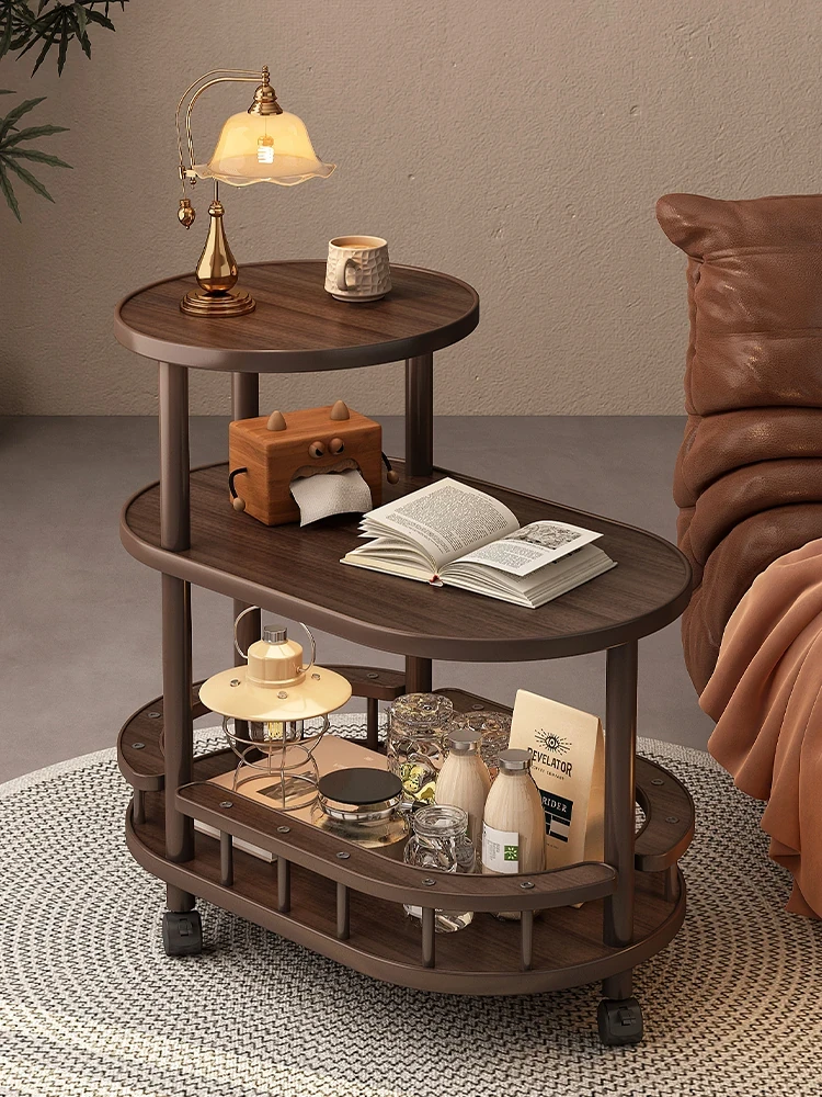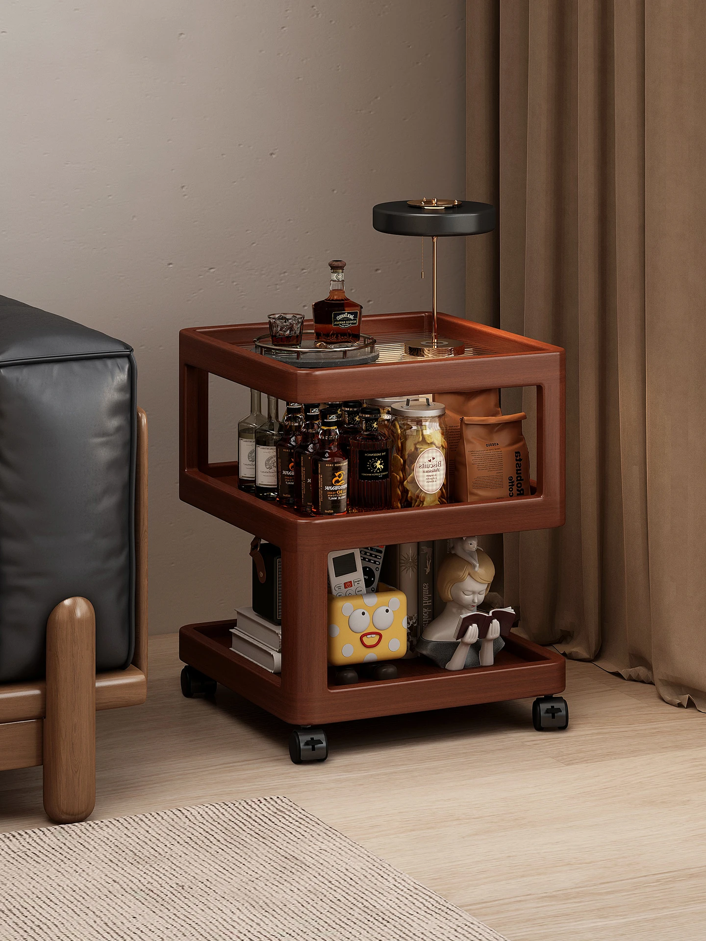 移動可能な無垢材ソファサイドテーブル|スタイリッシュなリビング用ミニキャリー|高級感あふれる2025年新作!