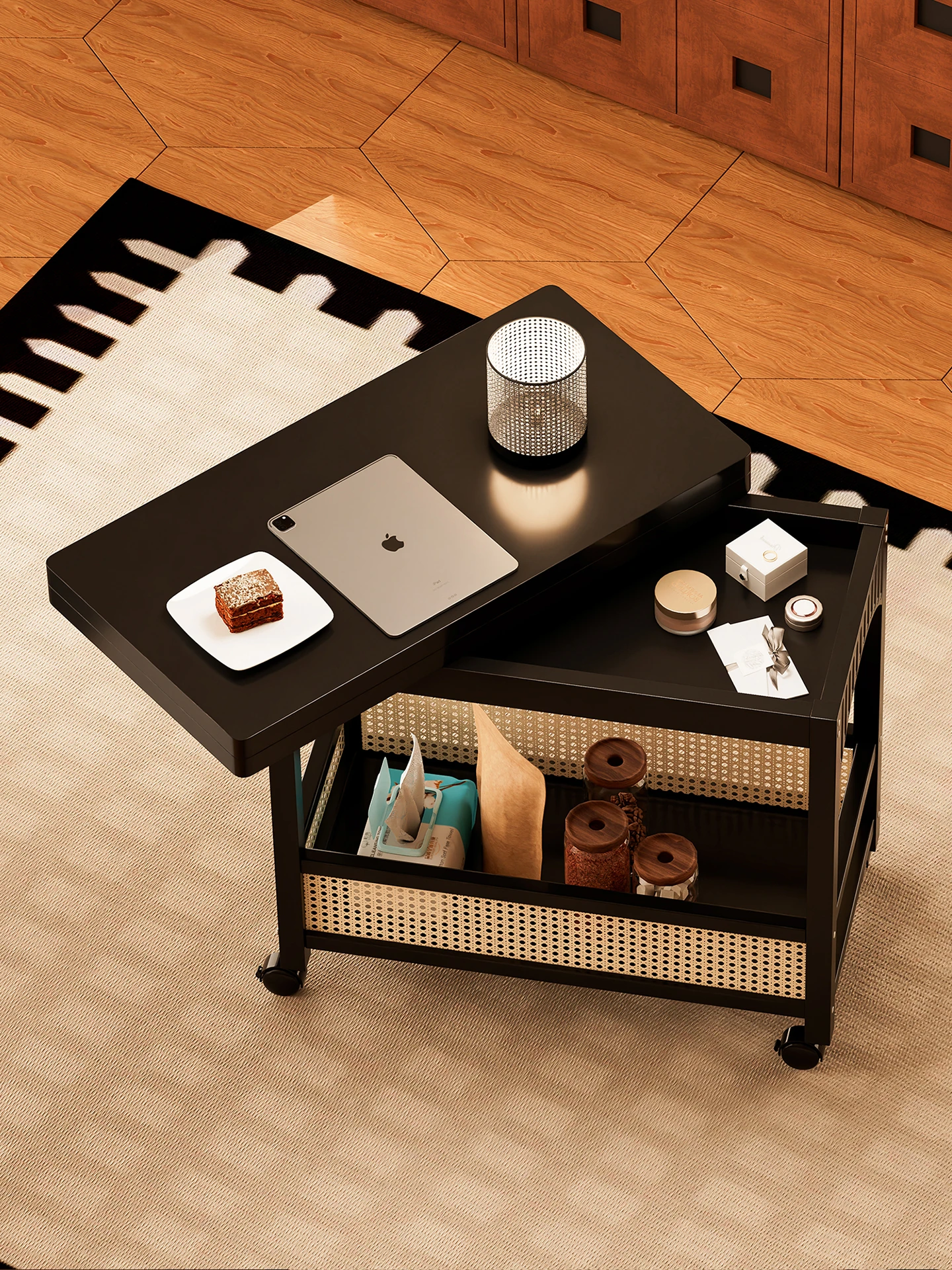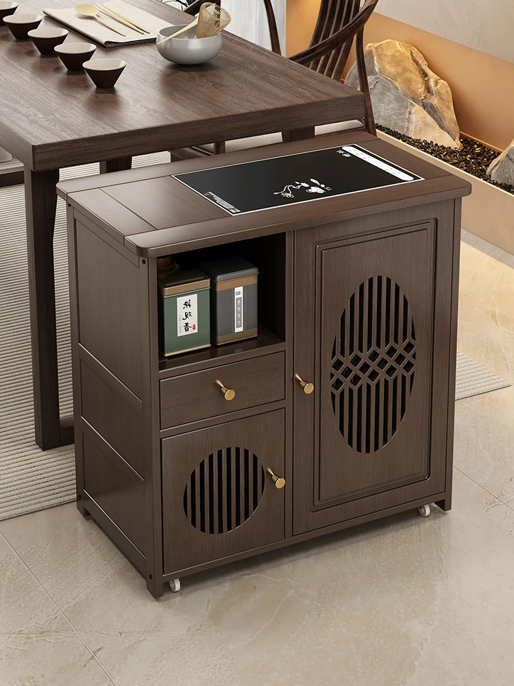 新中式デザインの小型リビング用茶卓!自動式ティーカート付きの多機能サイドキャビネット、狭いスペースにもぴったりなスタイリッシュな一体型家具。おしゃれな家で心温まるひとときを!