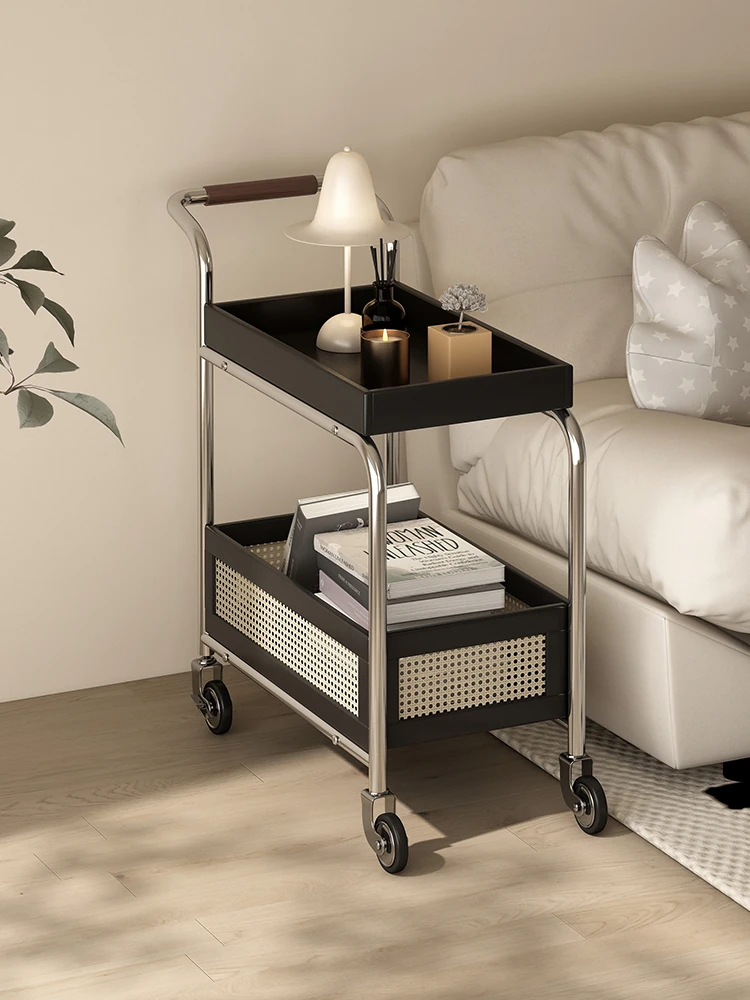 移動式ソファサイドテーブル - レトロなデザインのリビング用収納ラック、ティーテーブルや小さなキャリー、バルコニー用のサイドテーブルに最適!スタイリッシュで機能的な角テーブルでお部屋をおしゃれに演出。
