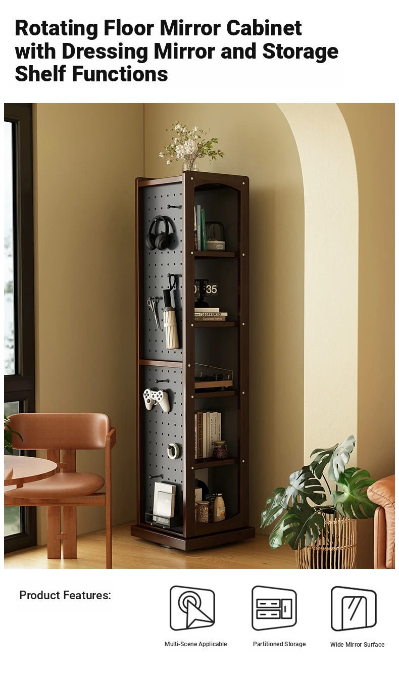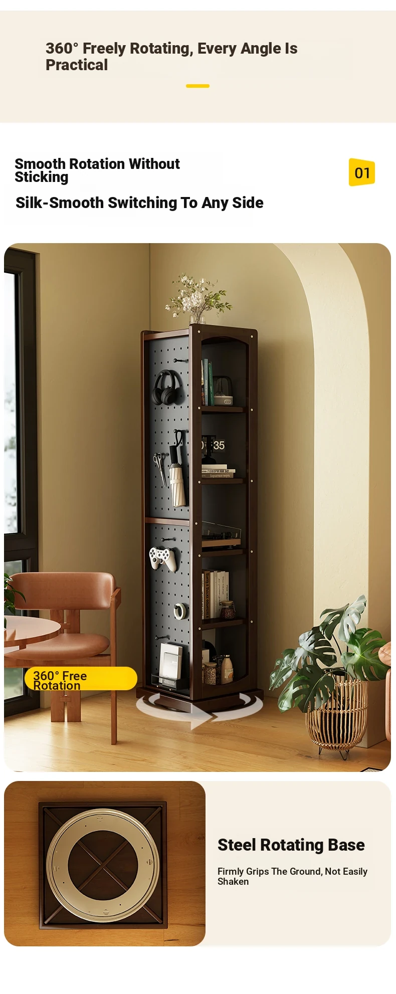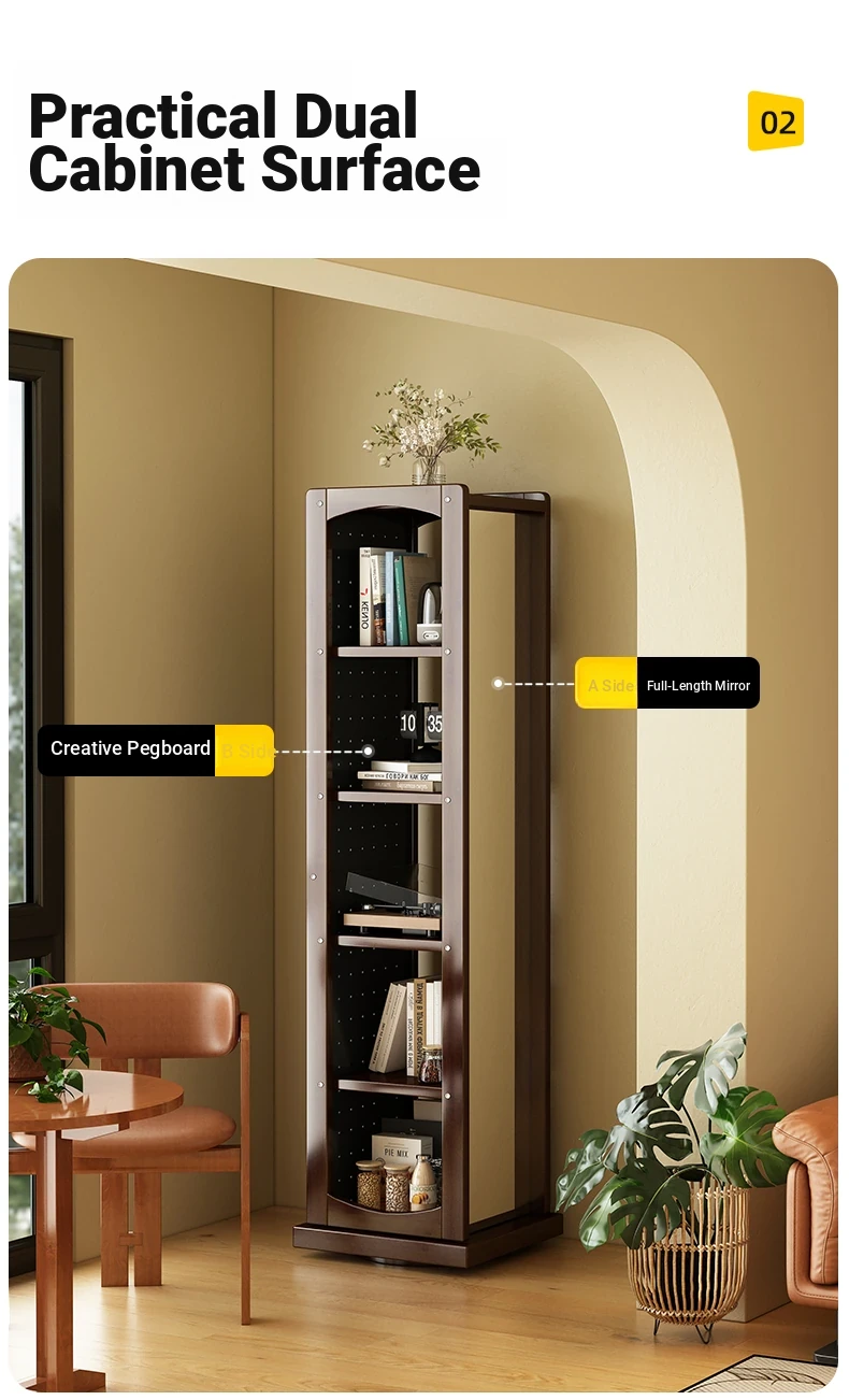360 ° Rotating Bookshelf ⭐ Perforated Board Storage Rack ⭐ Three-In-One Full-Length Mirror [Made of Bamboo]