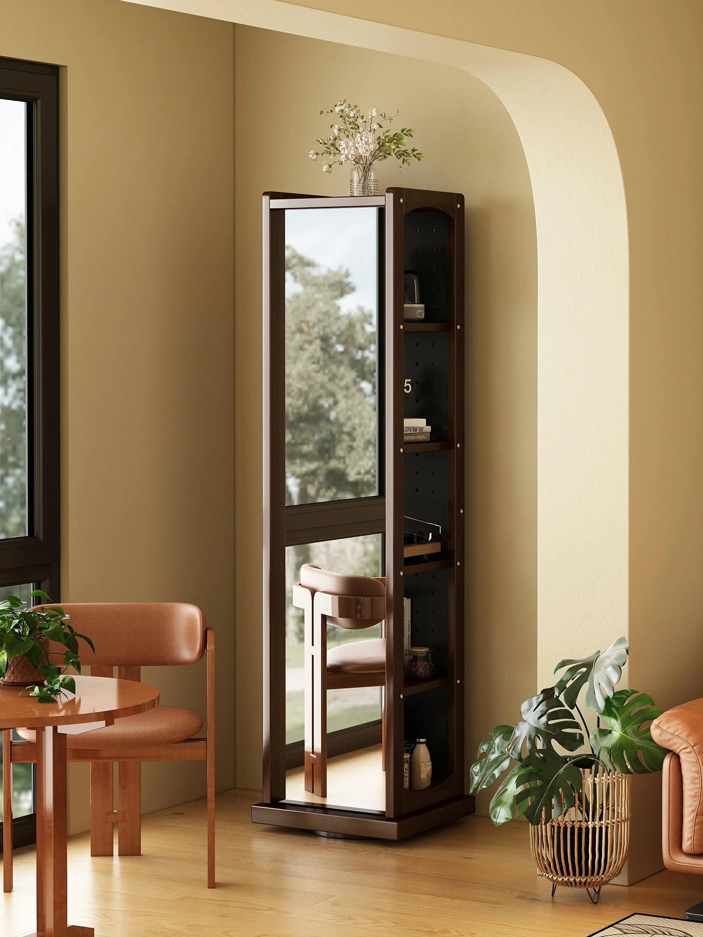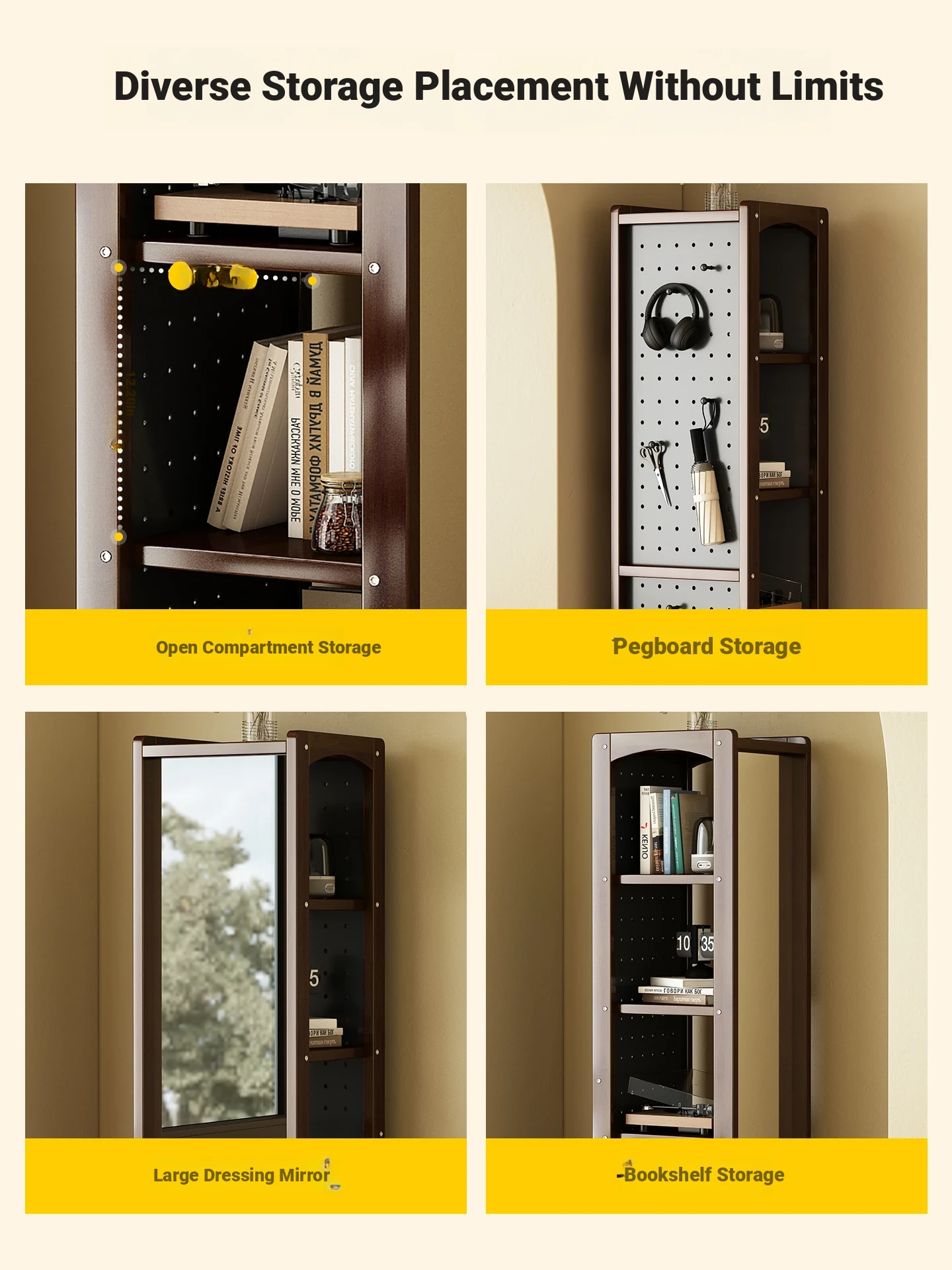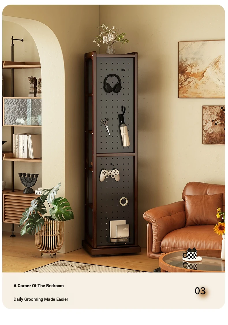 360 ° Rotating Bookshelf ⭐ Perforated Board Storage Rack ⭐ Three-In-One Full-Length Mirror [Made of Bamboo]