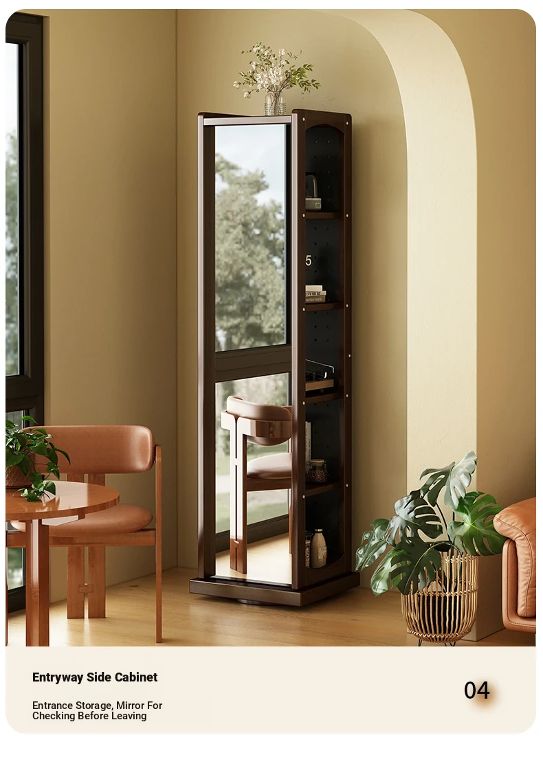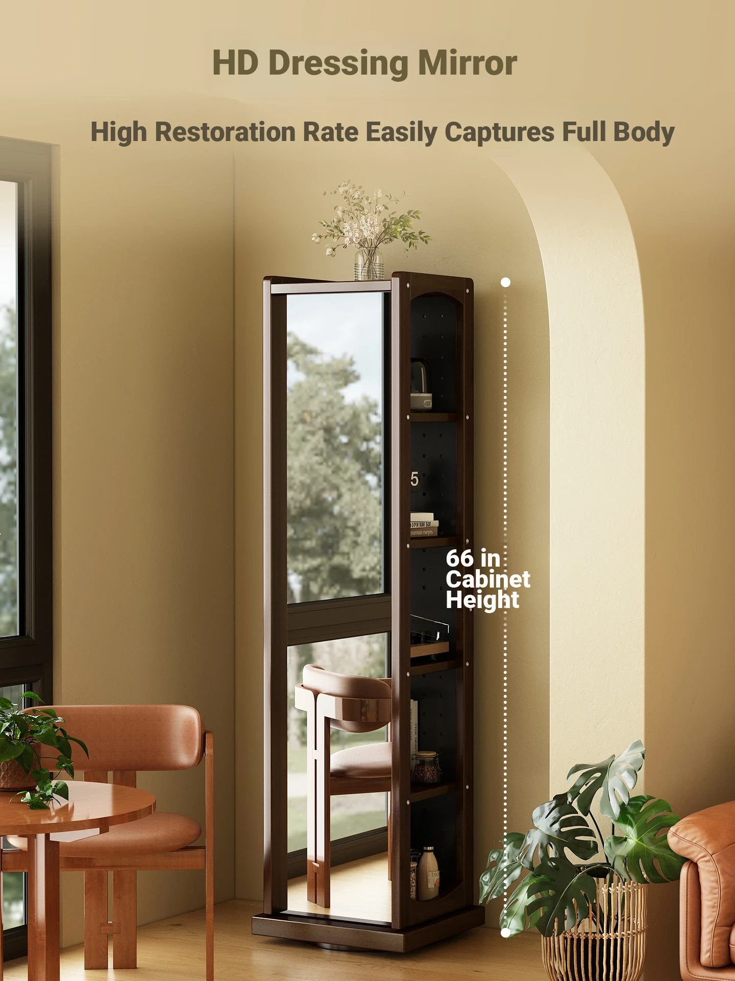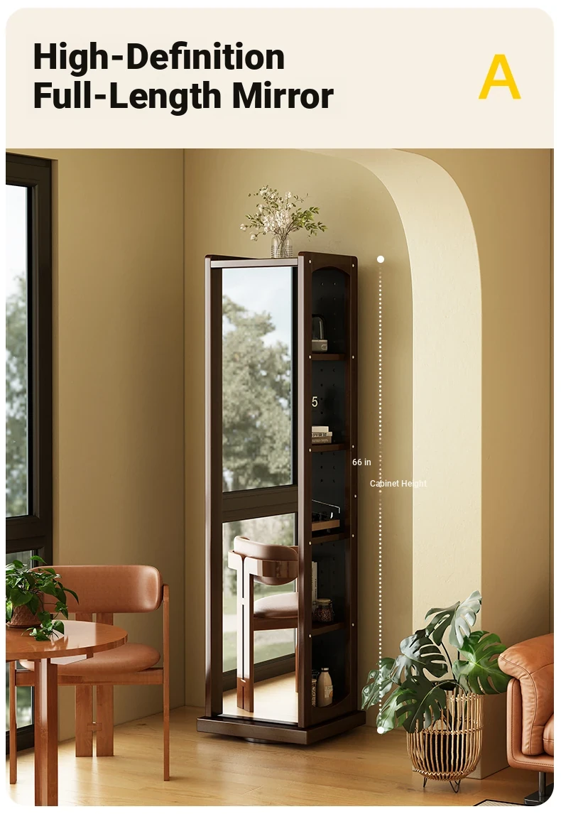 Multi-Functional Full-Length Dressing Mirror with Rotating Storage Shelf - Stylish Wall-Mounted and Freestanding Glass Mirror for Home Use, Perfect for Organizing and Displaying Your Essentials