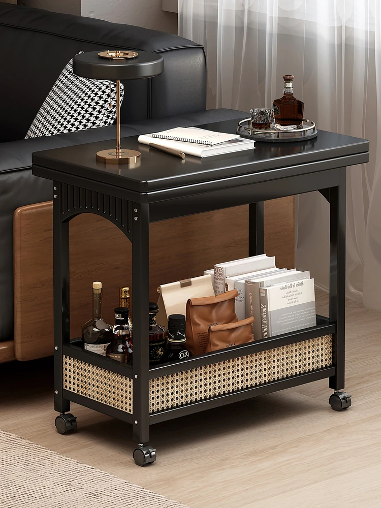 Elevate Your Living Space: Solid Wood Mobile Coffee Table with Adjustable Height - Versatile Side Table, Snack Cart, and Storage Shelf for Your Sofa Area, Perfectly Foldable and Stylish!