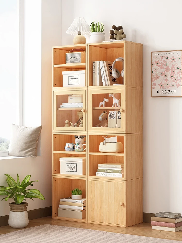 Modular Grid Bookshelf - Versatile Solid Wood Bookcase for Students and Home Use, Stylish Floor Storage Rack, Easy-to-Assemble Cube Organizer.