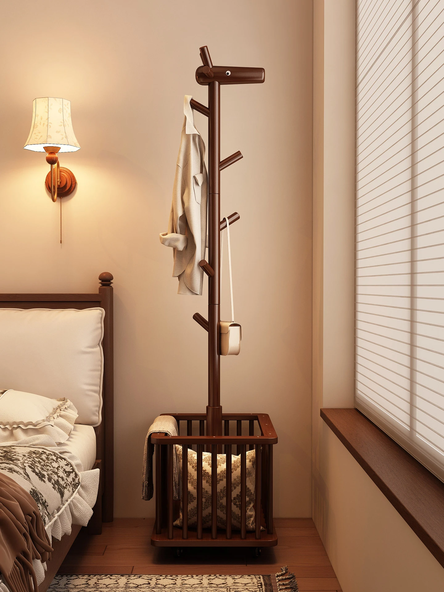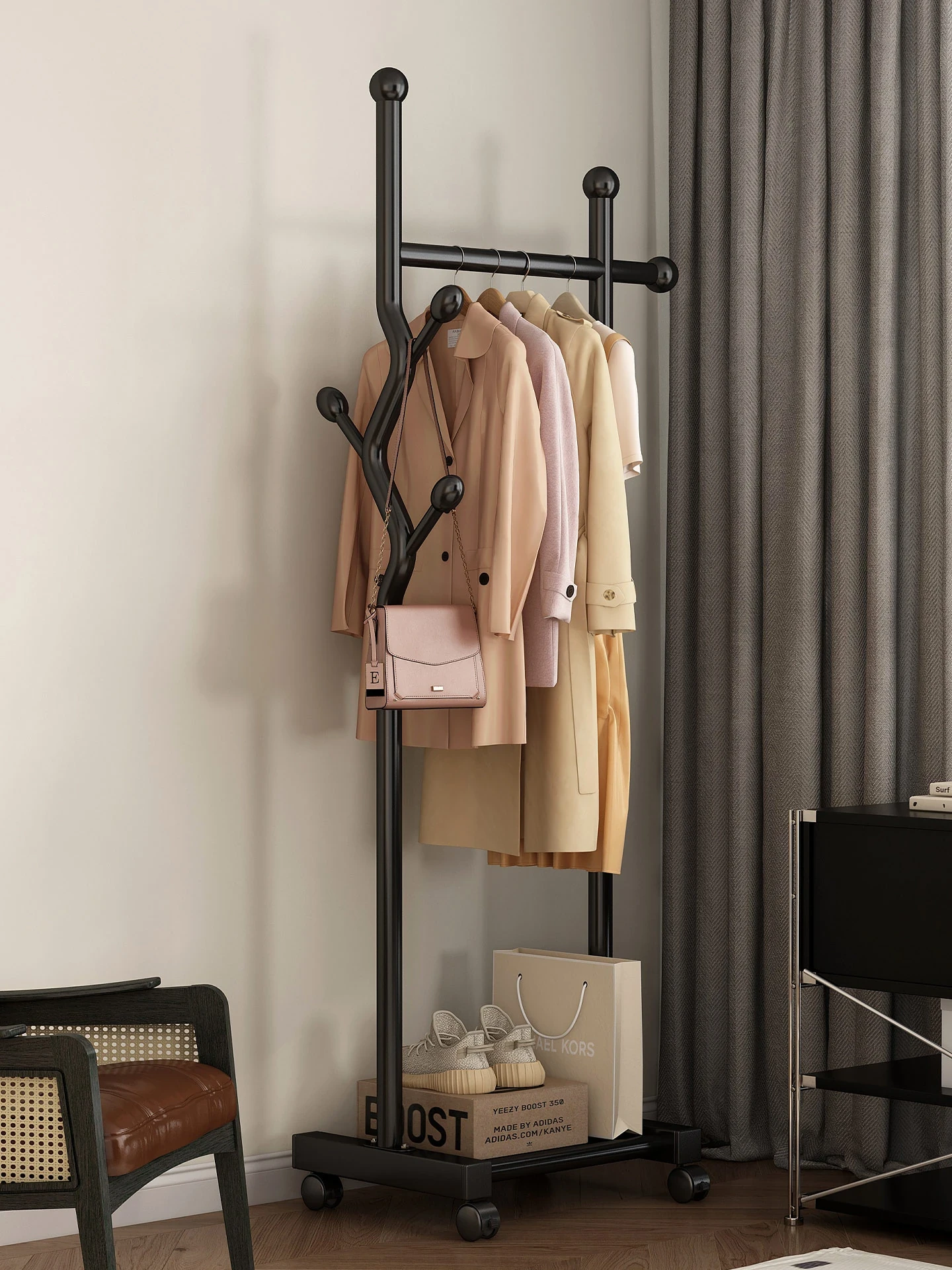 Creamy Floor Coat Rack - Stylish Stand for Clothes and Hats, Perfect for Bedroom or Entryway, Convenient Nighttime Outfit Organizer and Bag Holder