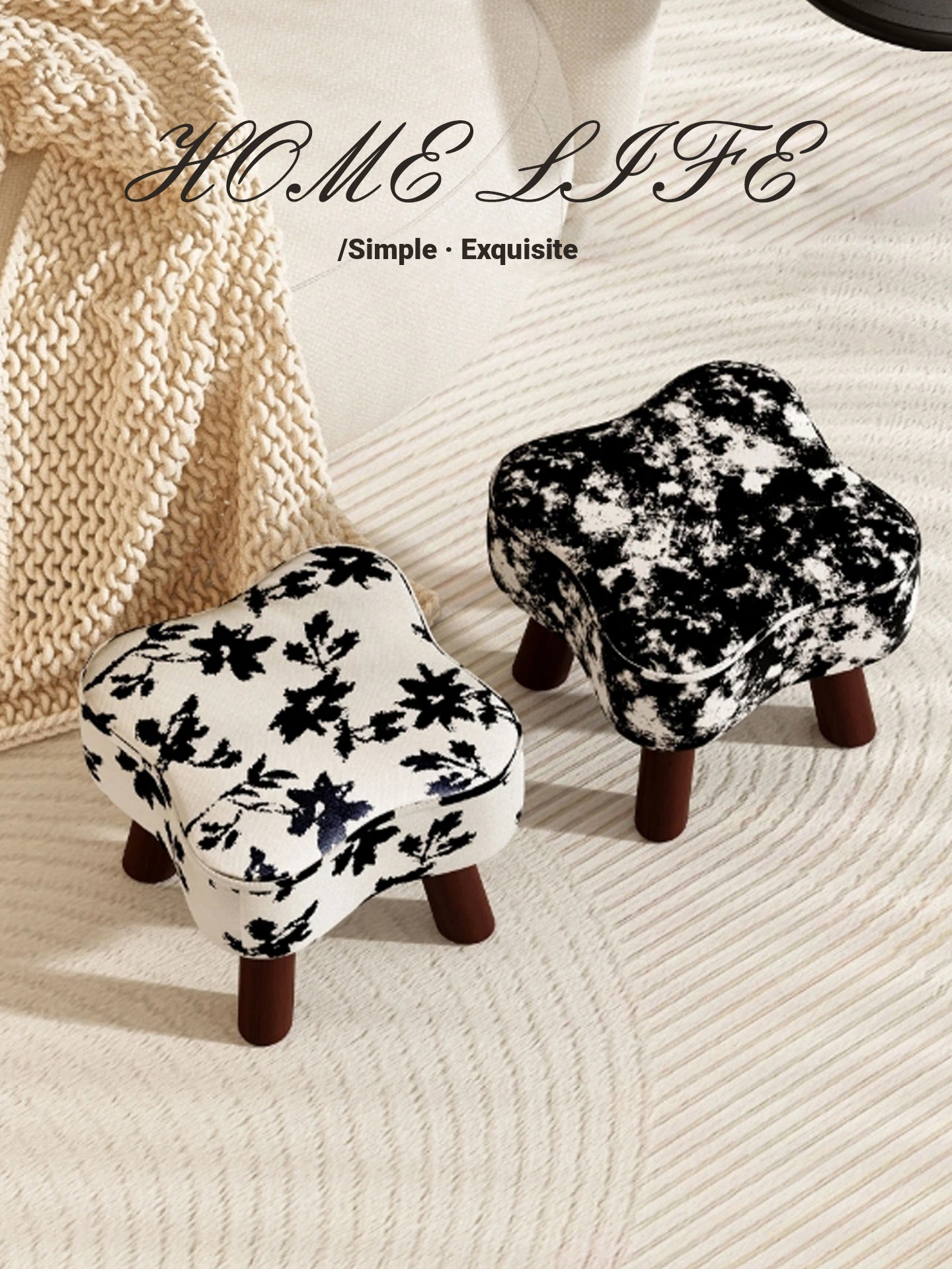 Solid Wood Clover Stool - Upholstered Shoe Changing Bench, No Installation Required, Perfect for Home Entryway, Low Footstool for Living Room, Versatile Seating and Footrest