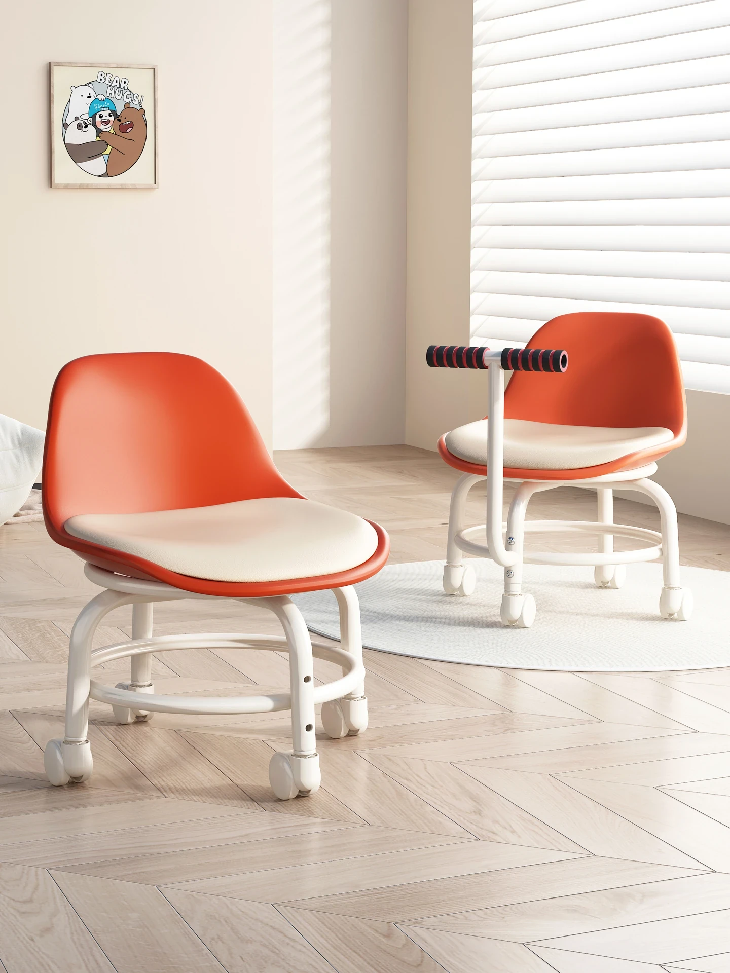 Children's Multi-Functional Rolling Stool - Portable Low Chair with Swivel Wheels for Toddlers, Perfect for Learning to Walk and Easy Mobility at Home