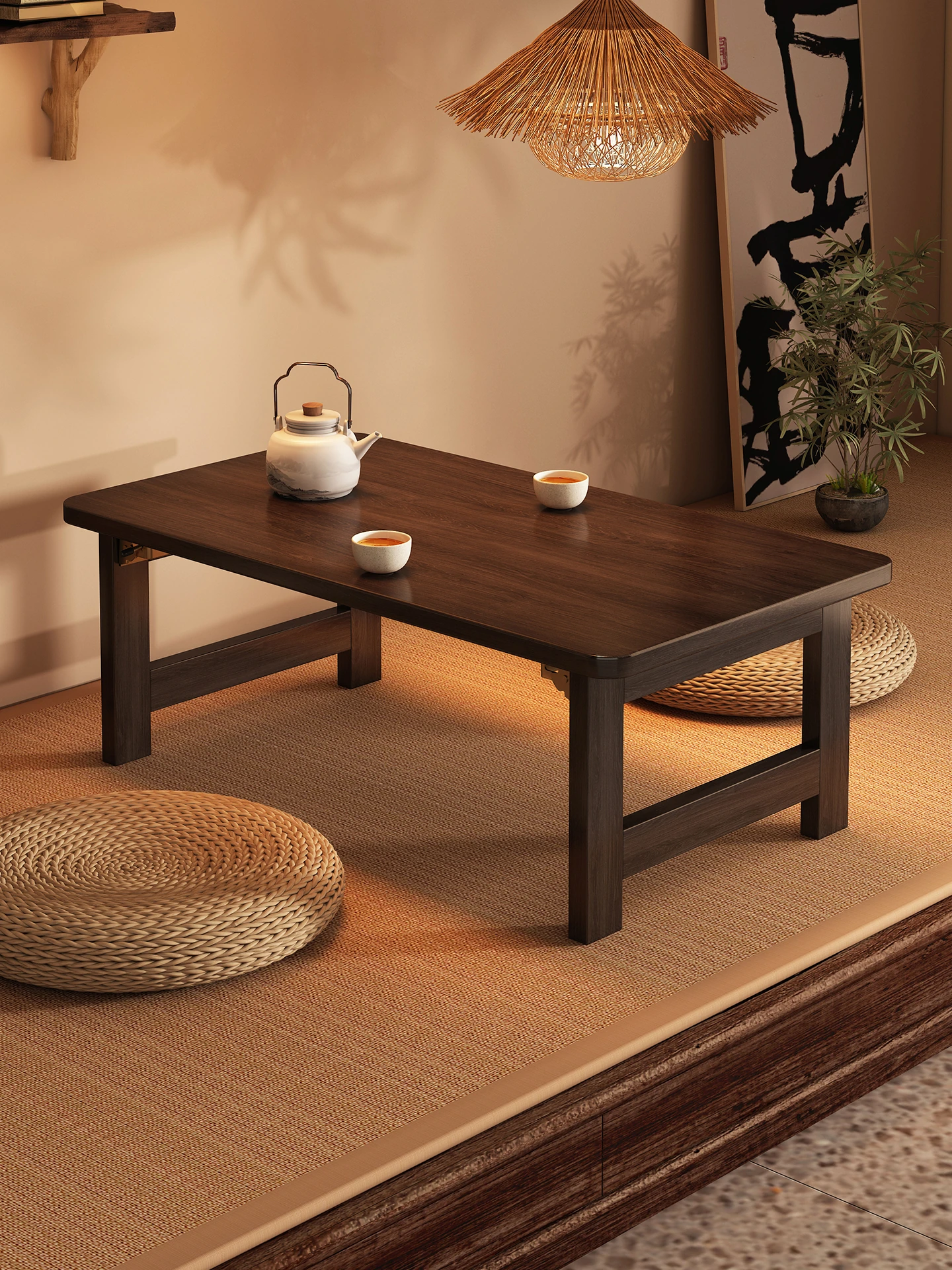 Folding Bay Window Table - Versatile Tatami Coffee Table for Bedroom, Home, Balcony, or Dorm; Perfect Low Desk for Sitting, Studying, or Relaxing on the Bed!