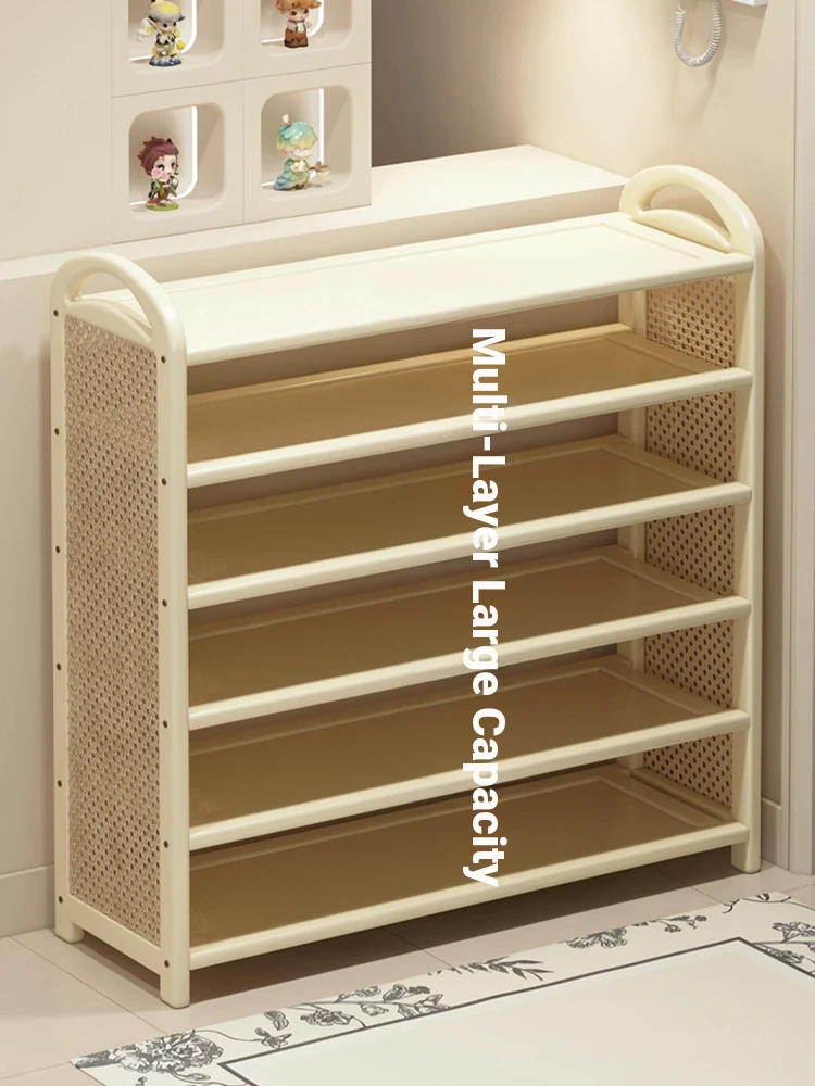 Multi-Layer Cream Shoe Rack for Home Entryway - Spacious Floor Standing Shoe Cabinet with Integrated Storage for Efficient Shoe Organization