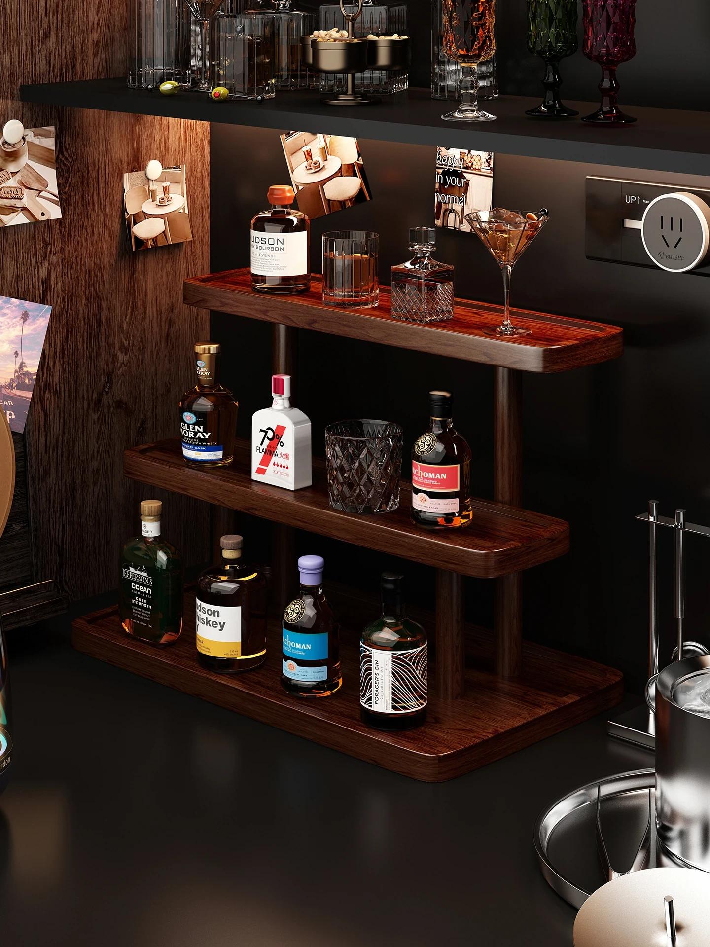 Stylish Tiered Desktop Wine Rack - Multi-Layer Display Shelf for Bar Décor | Perfect for Storing and Showcasing Spirits & Wine Glasses