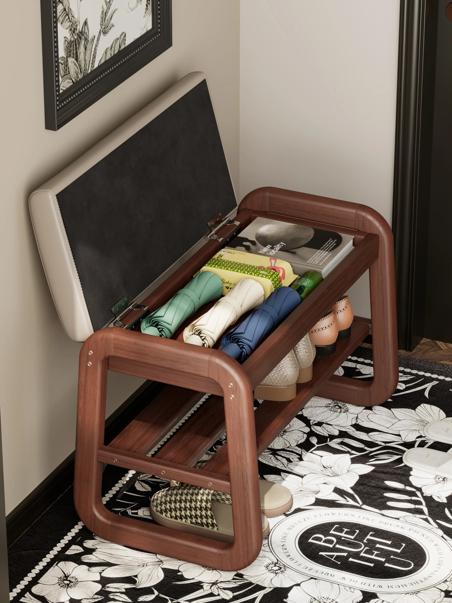 2025 New Vintage-Style Entryway Shoe Bench - Compact Shoe Cabinet with Seating for Home Use, Perfect for Narrow Spaces, High-End Design for Easy Shoe Changing at Your Doorstep