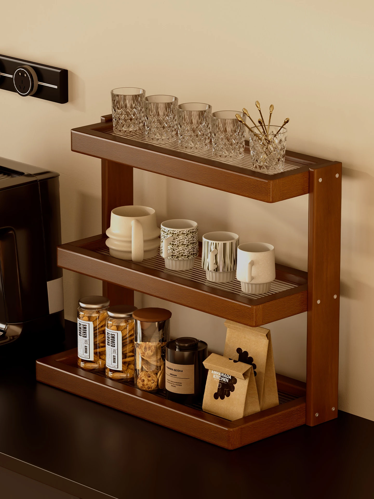 Vintage Solid Wood Cup Storage Rack - Stylish Organizer for Dining Tables, Coffee Mugs, and Workspace Essentials - Compact Design for Efficient Space Management