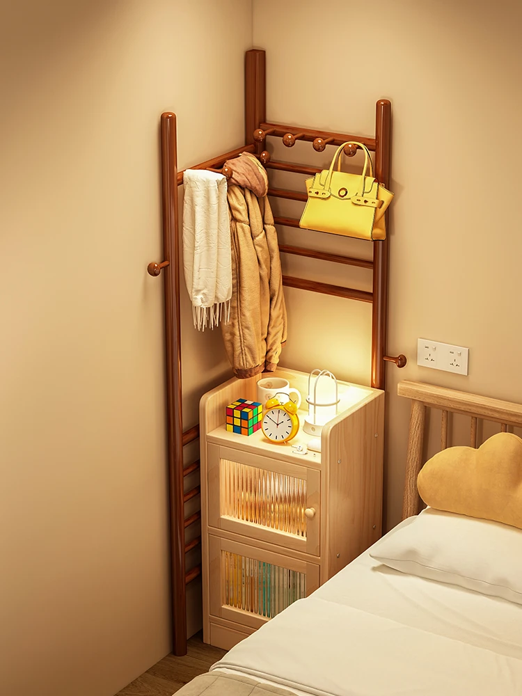 Corner Clothes Rack and Nightstand Combo for Small Spaces – Space-Saving Wall-Mounted and Floor-Standing Design for Bedroom, Perfect for Coats, Hats, and More!