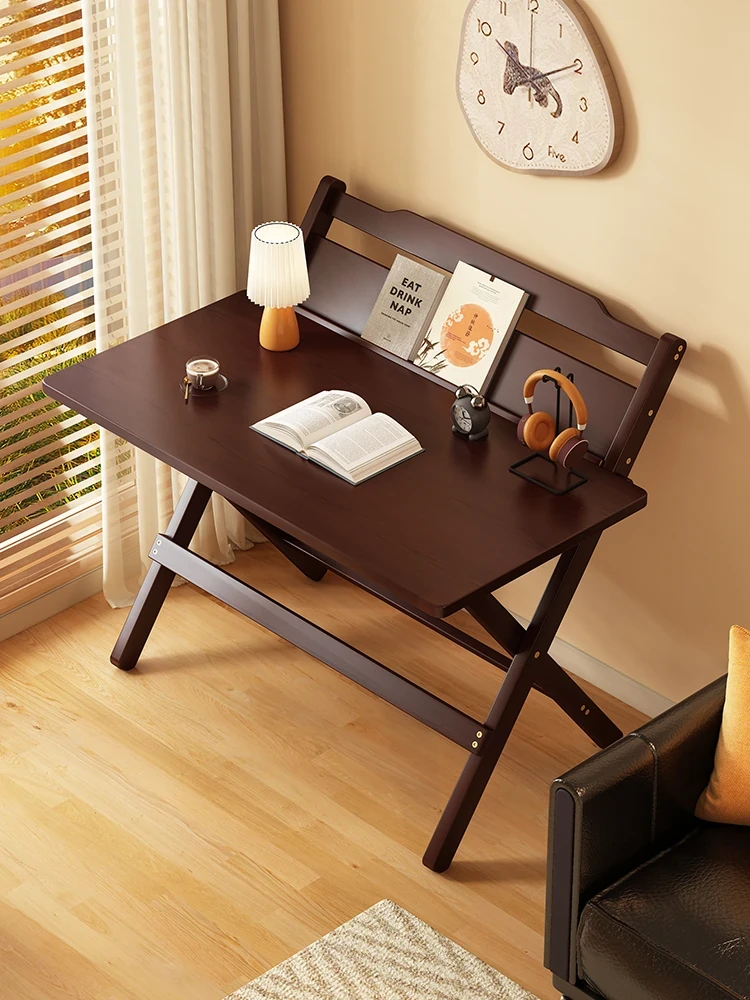 Foldable Wall-Mounted Desk and Bookshelf - No Installation Needed, Vintage Chinese Style Study Table for Small Spaces, Perfect for Students and Home Office Use
