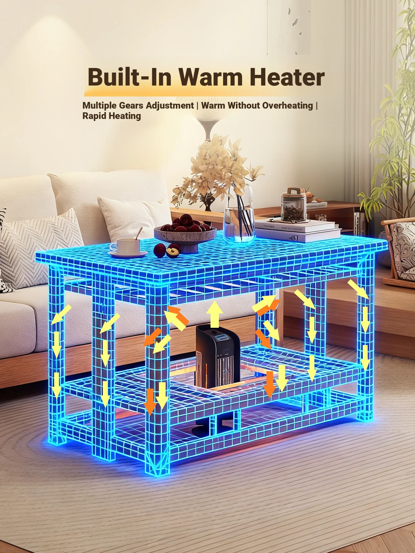New Folding Rectangular Heating Table - Versatile Home Use Fire Pit Table for Winter, Perfect as a Coffee Table or Dining Table, Ideal for Cozy Gatherings and Warmth