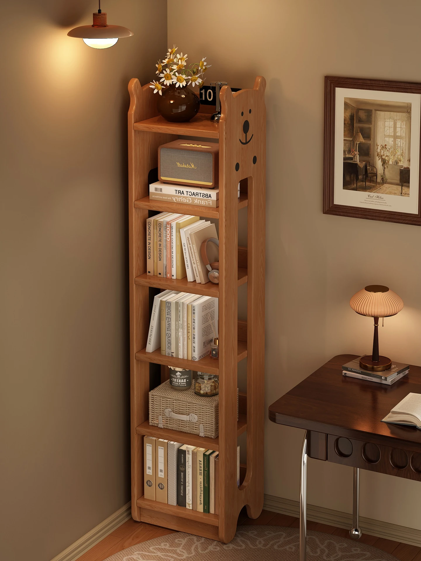 Corner Bookshelf Floor Storage Rack - Solid Wood Children's Picture Book Organizer, Space-Saving Corner Display Shelf, Ideal Storage Cabinet for Students and Home Use