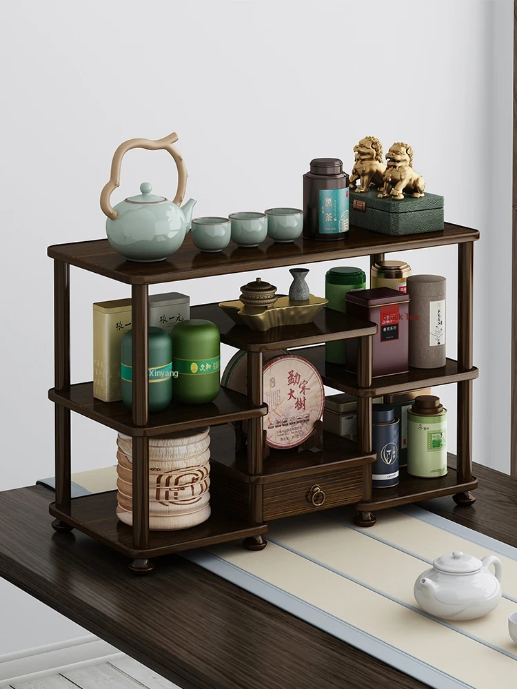 Elegant Chinese-Style Solid Wood Desktop Display Rack - Minimalist Tea Cabinet for Tea Storage and Teaware Organization
