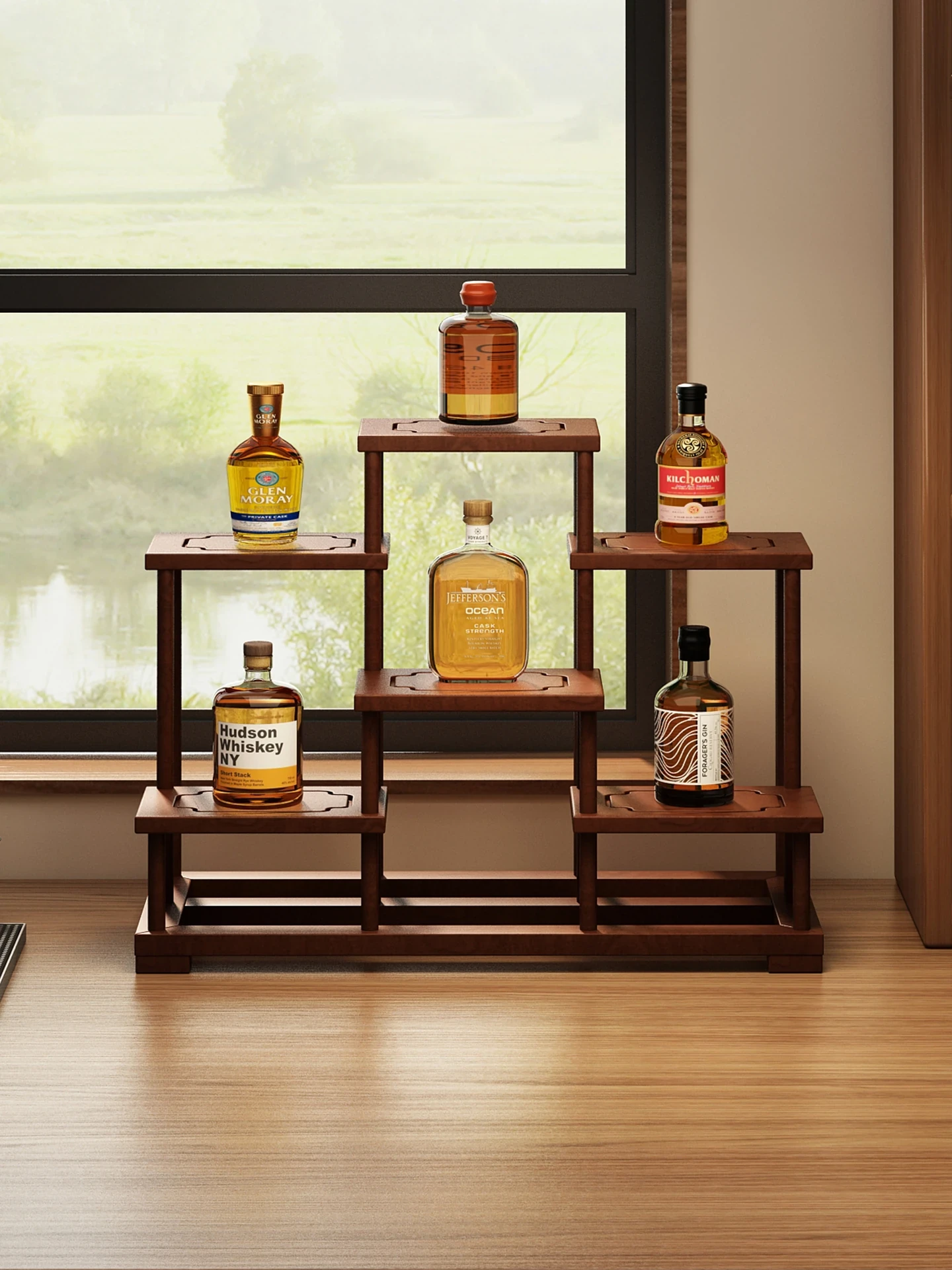 Solid Wood Mini Wine Display Rack - Stylish Storage for Home Bar, Perfect for Showcasing Liquor Bottles and Organizing Your Collection. Ideal for Home Use and Small Spaces.