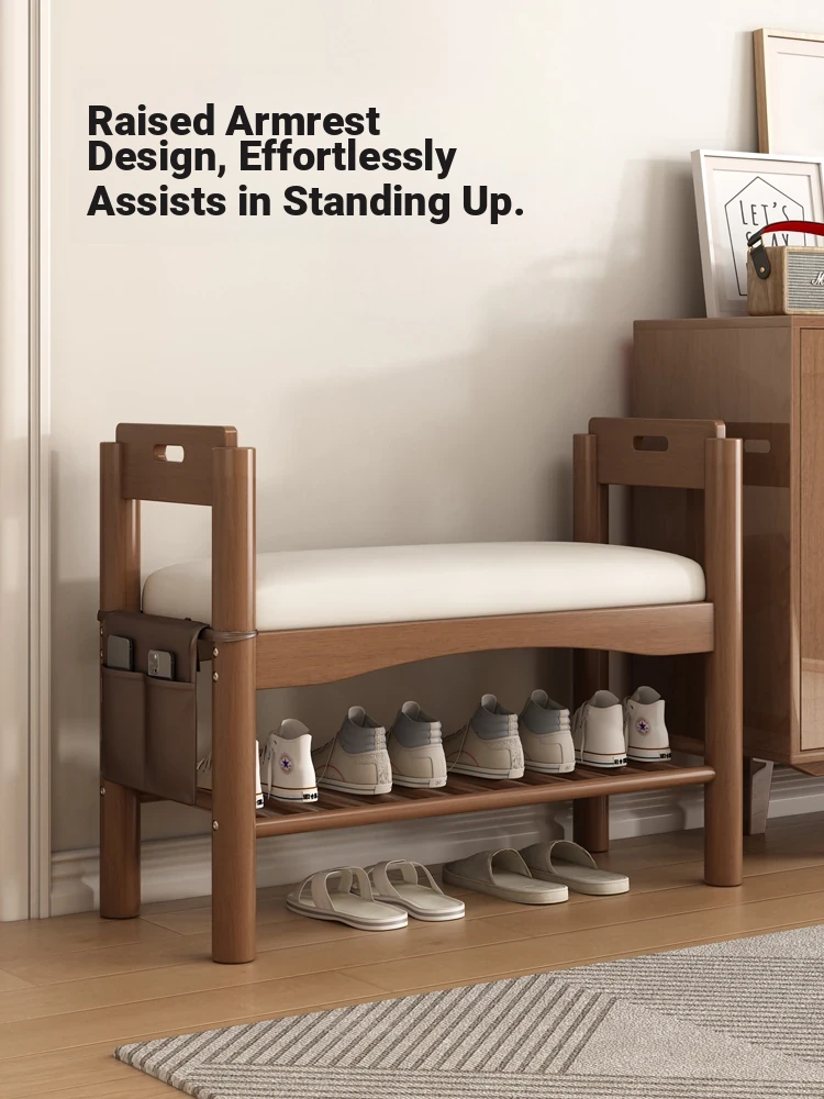 Solid Wood Shoe Changing Bench for Elderly - Home Entryway Stool with Armrests, Perfect for Doorway Shoe Cabinet and Comfortable Sitting while Putting on Shoes.