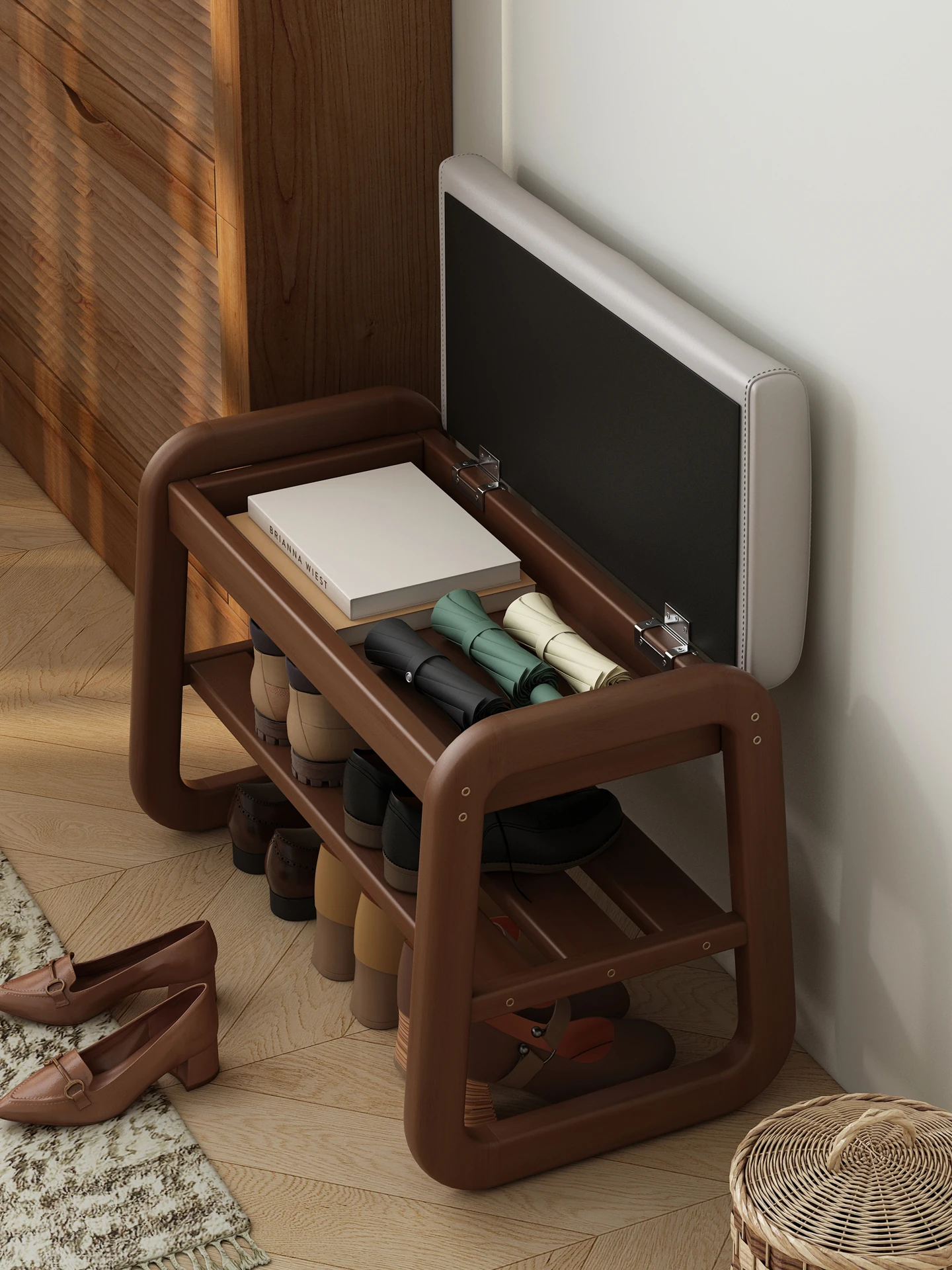 Multipurpose Solid Wood Shoe Bench with Soft Cushion - Ideal for Entryway, Convenient Storage, and Comfortable Seating for Home Use