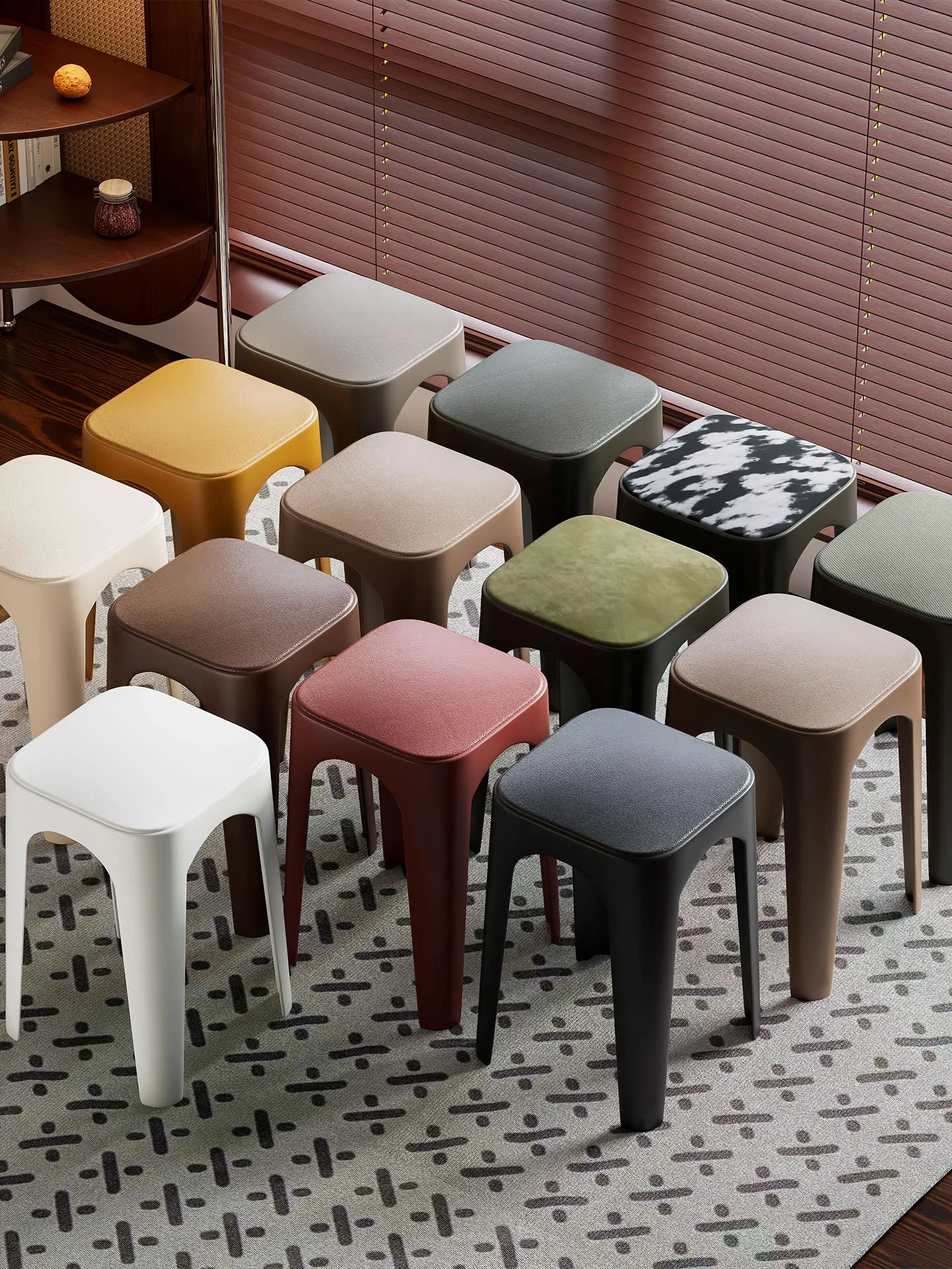 Durable Thickened Soft Cushion Plastic Stool for Home Use – Space-Saving Stackable Guest Seating, Perfect for Living Rooms and Extra Seating Needs!