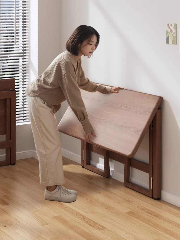 Portable Folding Table for Home - Space-Saving Dining Table, Ideal for Small Apartments and Student Rooms, Sturdy Solid Wood Folding Desk for Easy Writing and Studying
