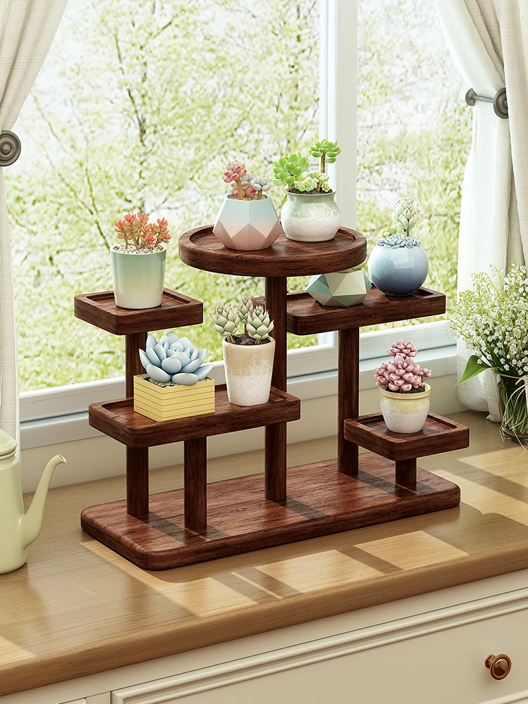 天然木材製の多層階段型プランタースタンド - バルコニーや窓辺を美しく彩る!多肉植物やグリーンを素敵にディスプレイし、空間を有効活用できるおしゃれな収納ラック。