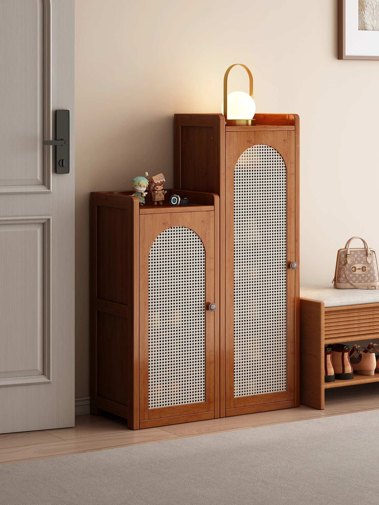 スリムデザインの多層シューズラック - 家庭用玄関収納、ホコリ防止の靴キャビネットで、壁にぴったりフィット!狭いスペースにも最適な一体型シューズ収納。おしゃれで機能的な靴整理を実現!