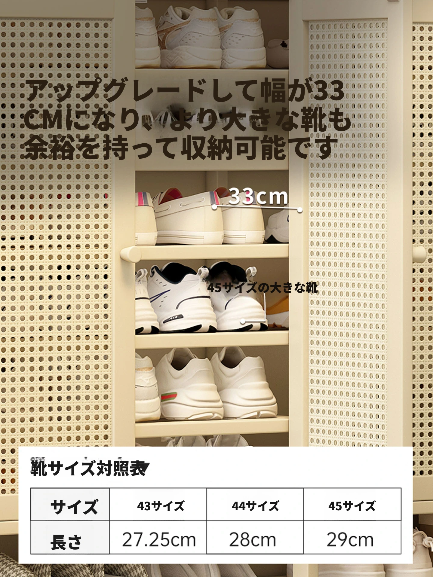 クリーム風シューラック 玄関用シューズキャビネット おしゃれで多層収納可能 壁掛け一体型 2025年新作 お部屋をスッキリ美しく!