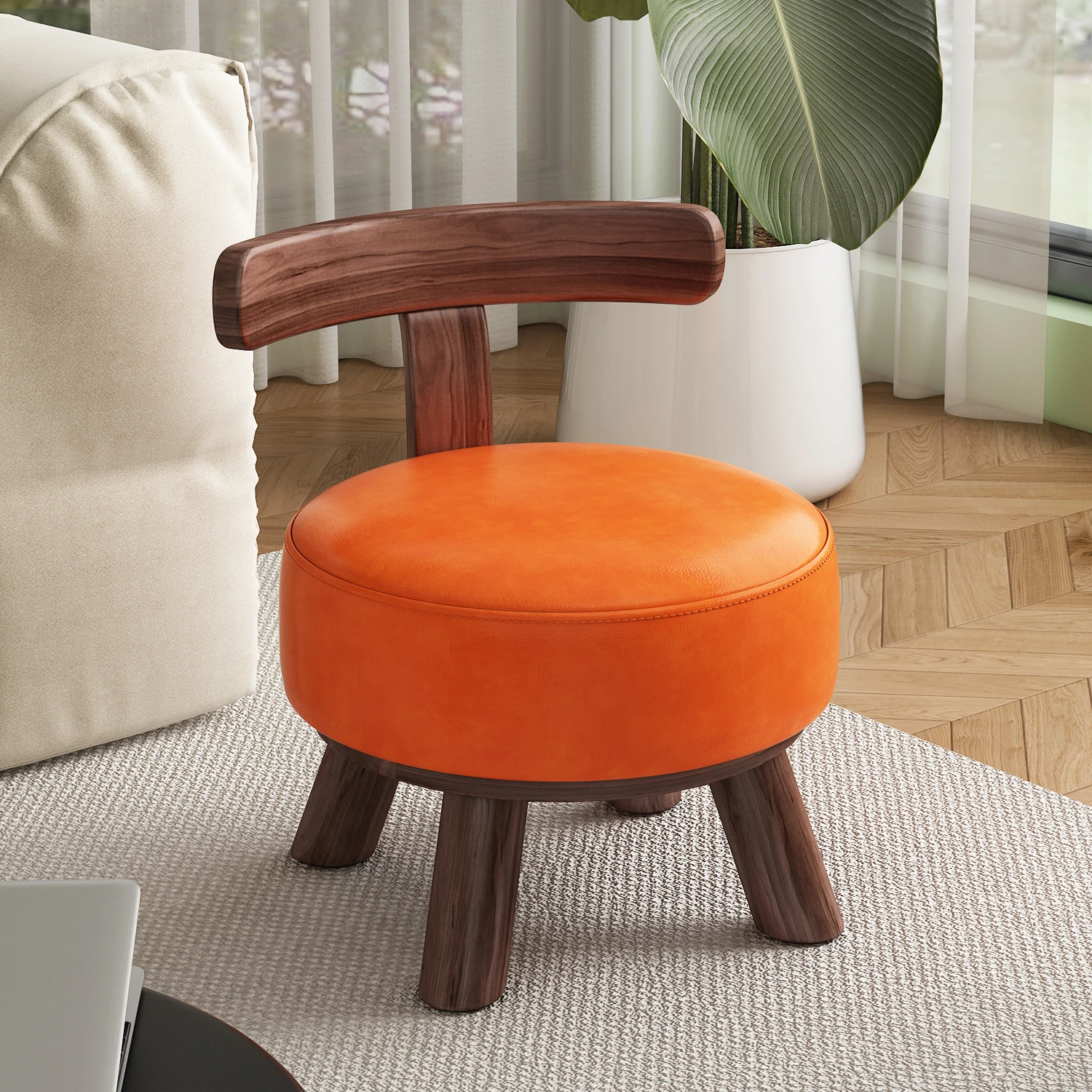 家庭用の小さな木製スツール - リビングやバスルームにぴったりな丸型シート!背もたれ付きで子供にも安心、快適な座り心地をお届けします。おしゃれで実用的な一品です。