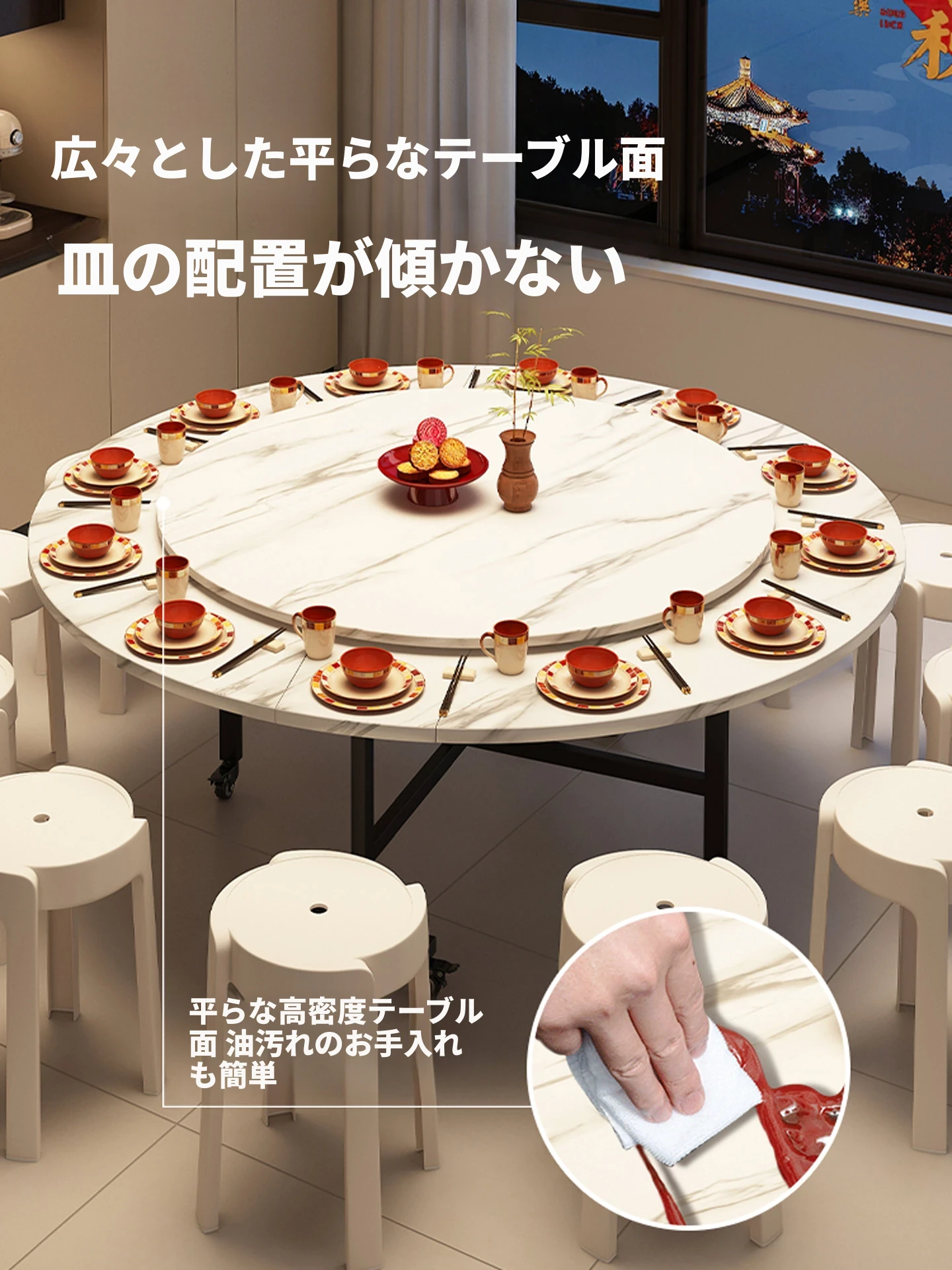 折りたたみ式ダイニングテーブル - 小型住宅向けの移動可能な大きな円形テーブル!10人〜15人用、回転式トレイ付きのシンプルで新しいデザイン。家族や友人との食事を楽しむための完璧な選択!