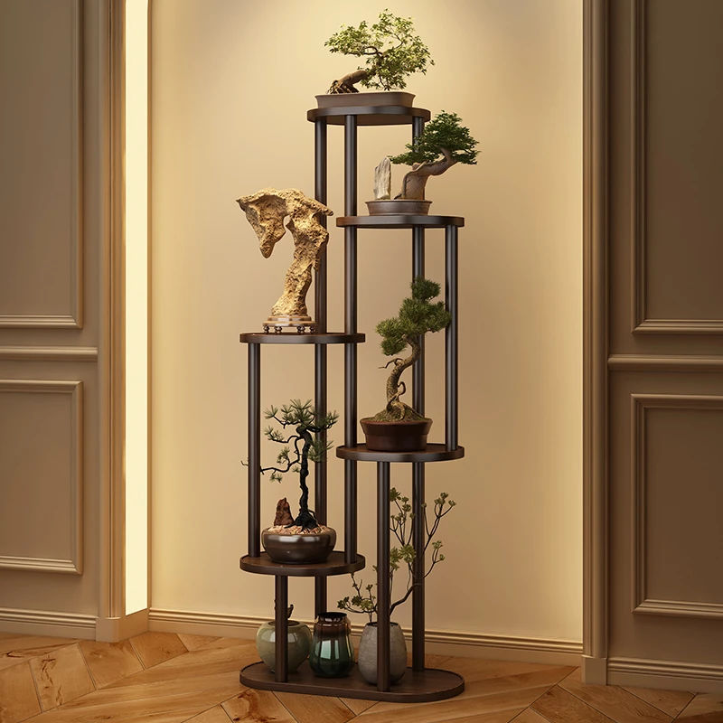 新中式スタイルのシンプルでモダンな茶棚 - 茶室やリビングに最適なディスプレイラック、観葉植物や小物を美しく飾るための必需品!