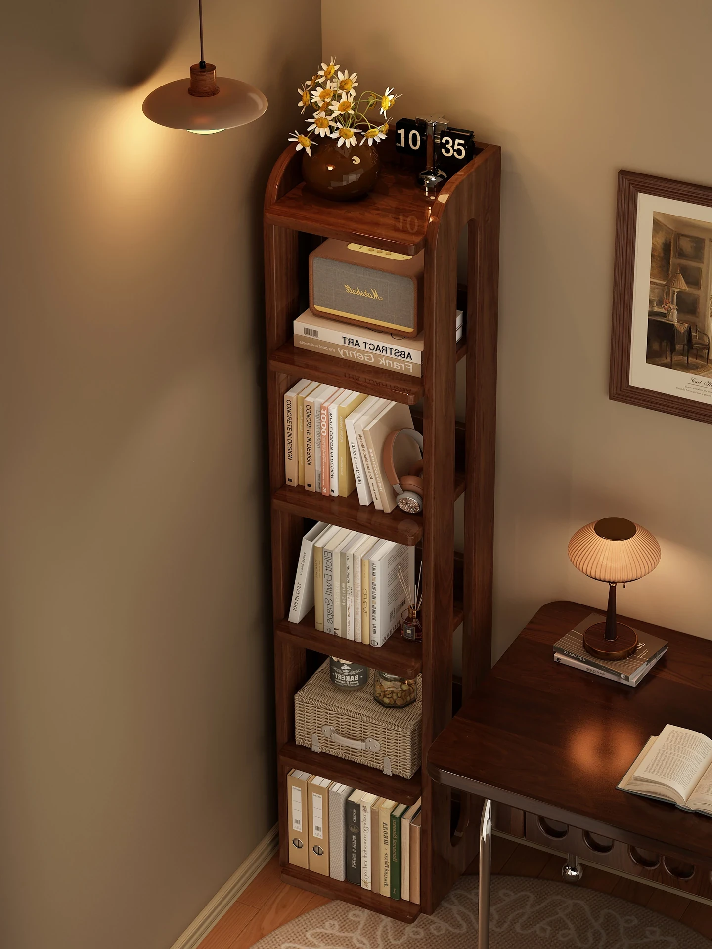 壁に寄せられる多機能書棚!リビングにぴったりのコンパクトな収納ラック。自由に組み合わせ可能な多層設計で、あなたの本や小物をスタイリッシュに整理。家庭での使いやすさ抜群!
