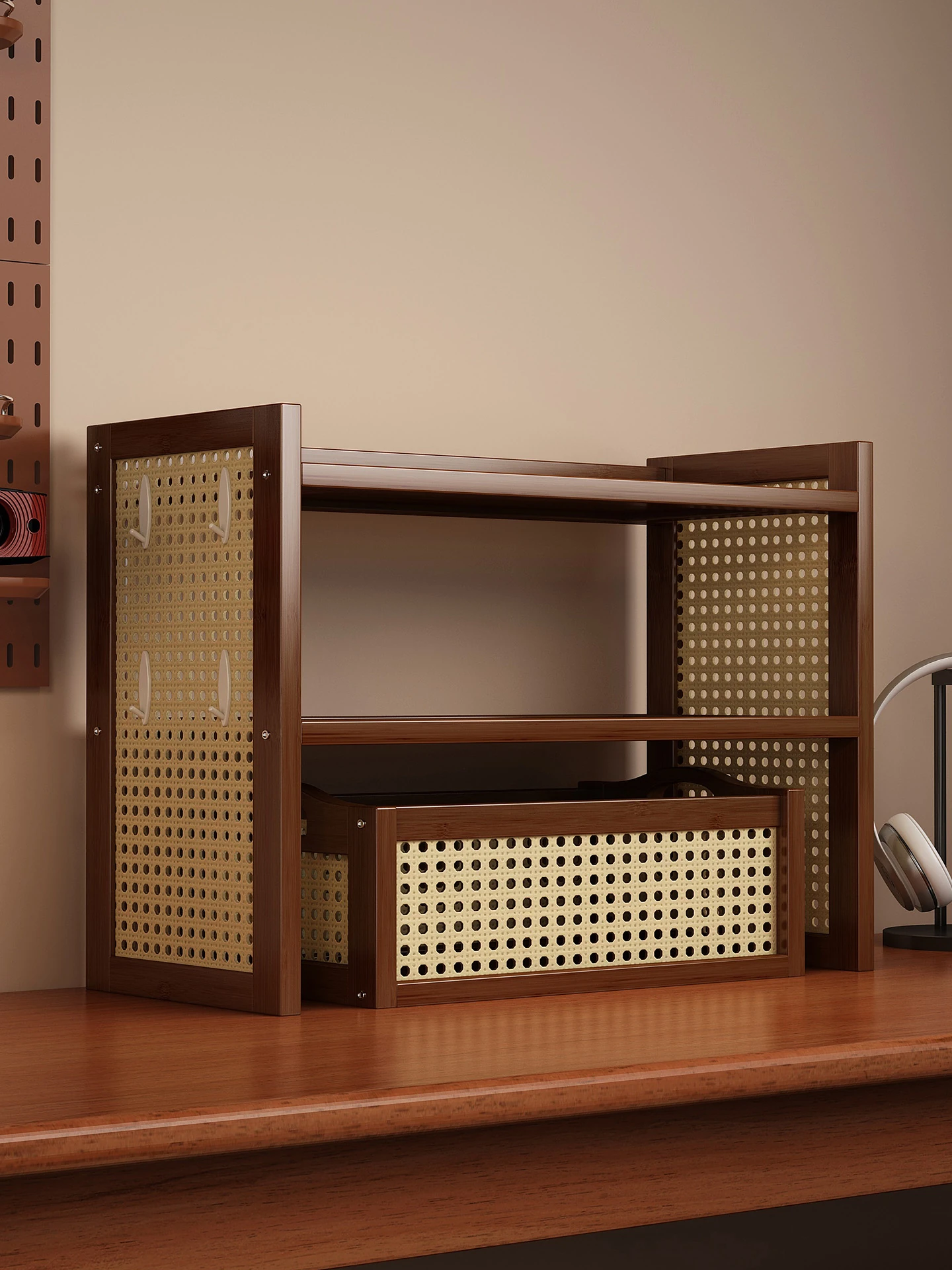 穴あきボード収納ラック 学生・家庭向け 多段シンプル書棚 スリムな整理棚 コンピューターデスクの改造に最適なアイテム!お部屋をスッキリ整理して、作業効率アップ!