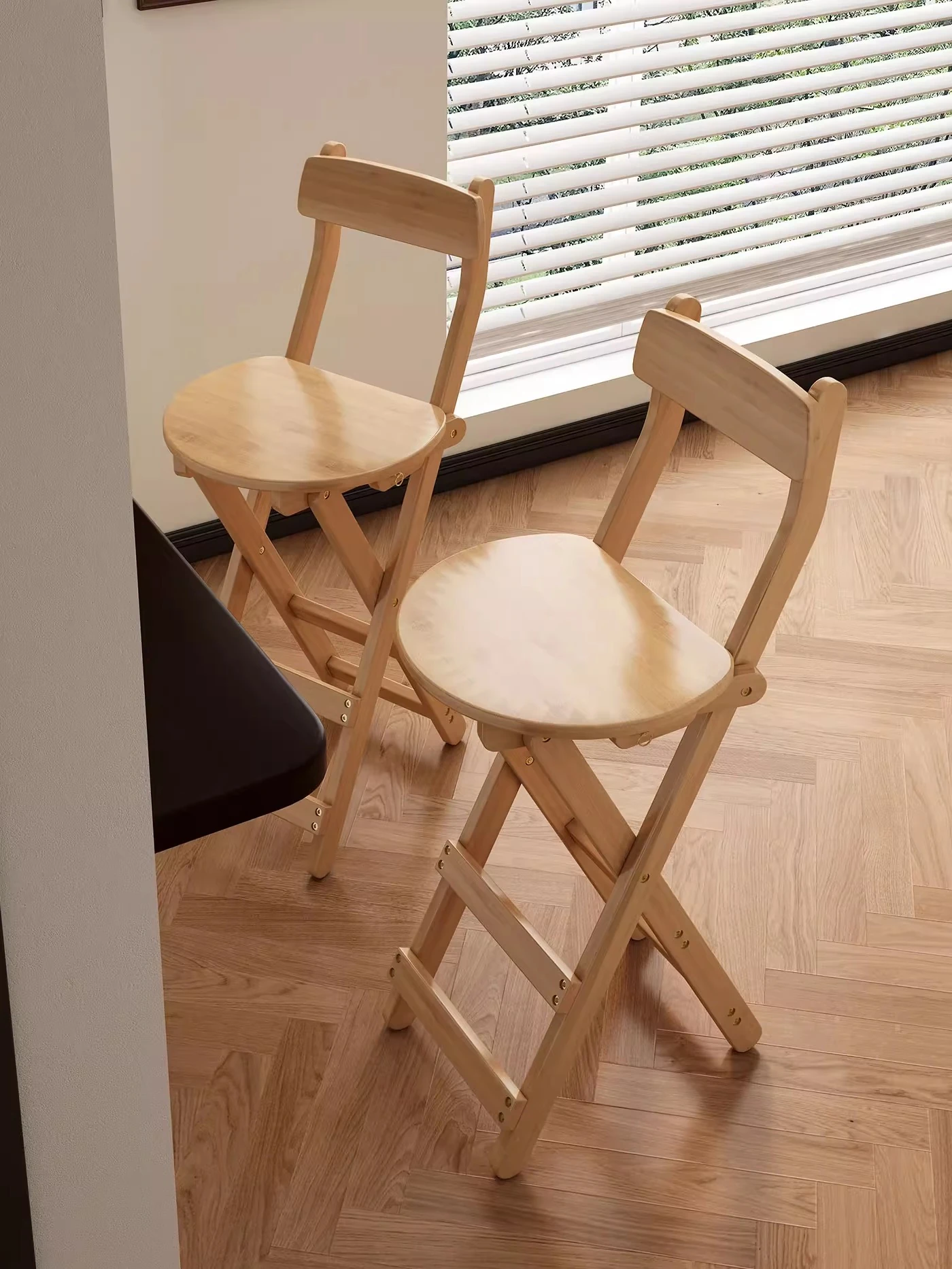 おしゃれな折りたたみ式ハイバーチェア|実木製・レトロデザイン|家庭用・カフェ・バーに最適|快適な背もたれ付きで、収納も簡単!