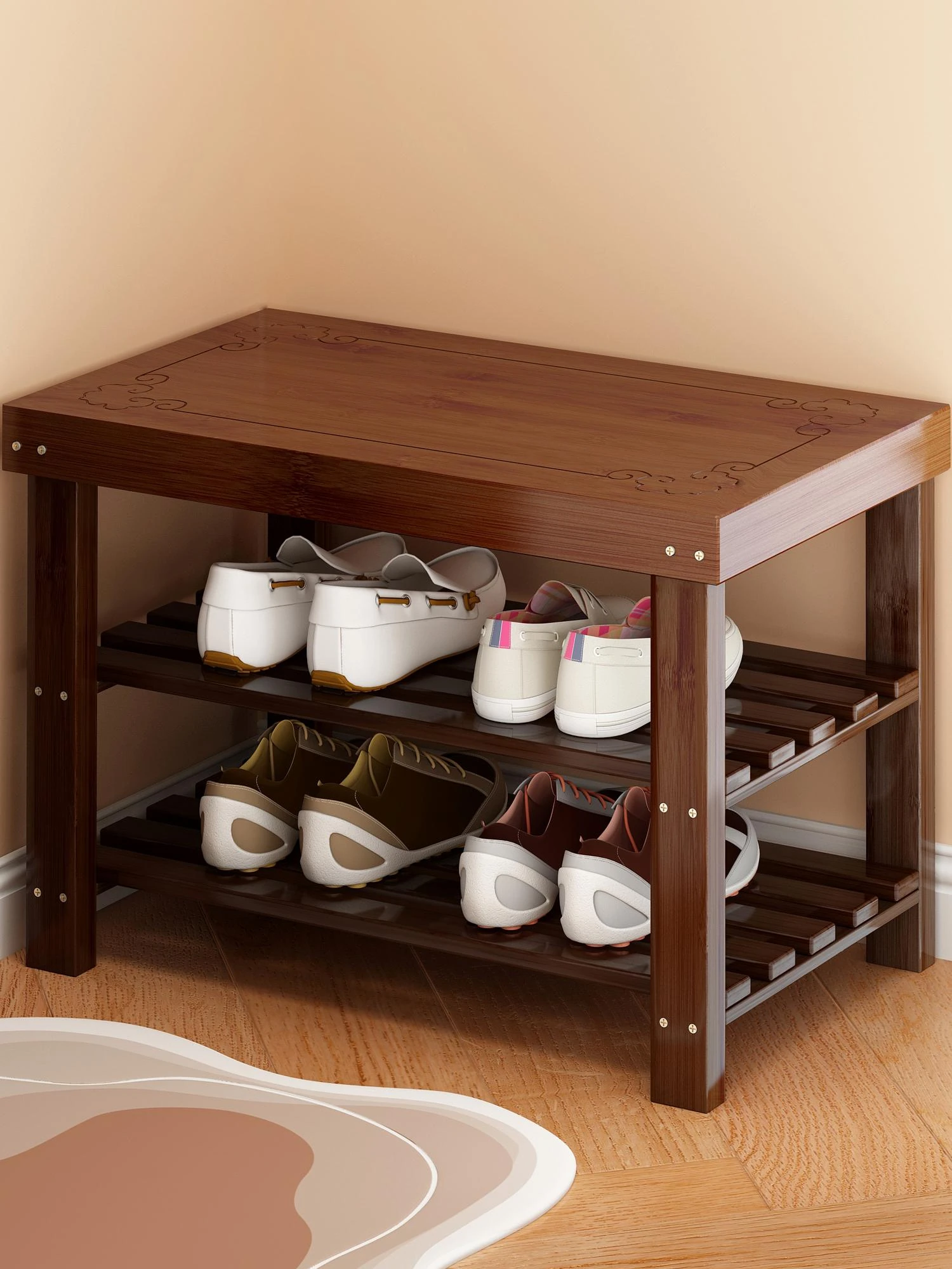 玄関用シューズベンチ - 座れる・収納できる多機能シューズキャビネット!自宅の玄関をスタイリッシュに演出し、スムーズな靴の着脱を実現します。おしゃれで便利なアイテムで、家族やゲストを迎えるのに最適です!