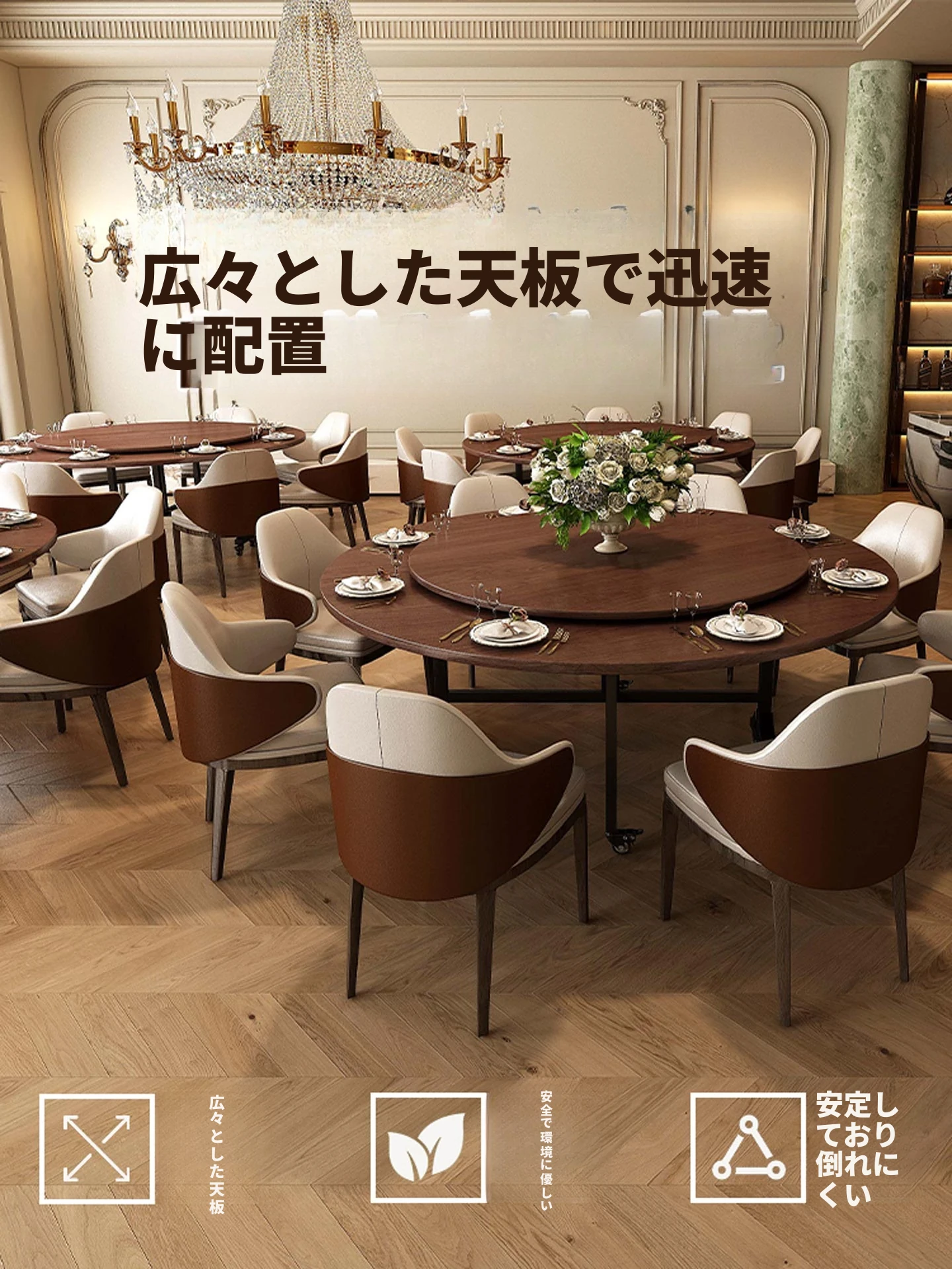 折りたたみ式大円卓 - 家庭用・ホテル・パーティーに最適!10人〜12人対応、回転式、移動可能な円形食卓。食事をもっと楽しく、スペースを有効活用!