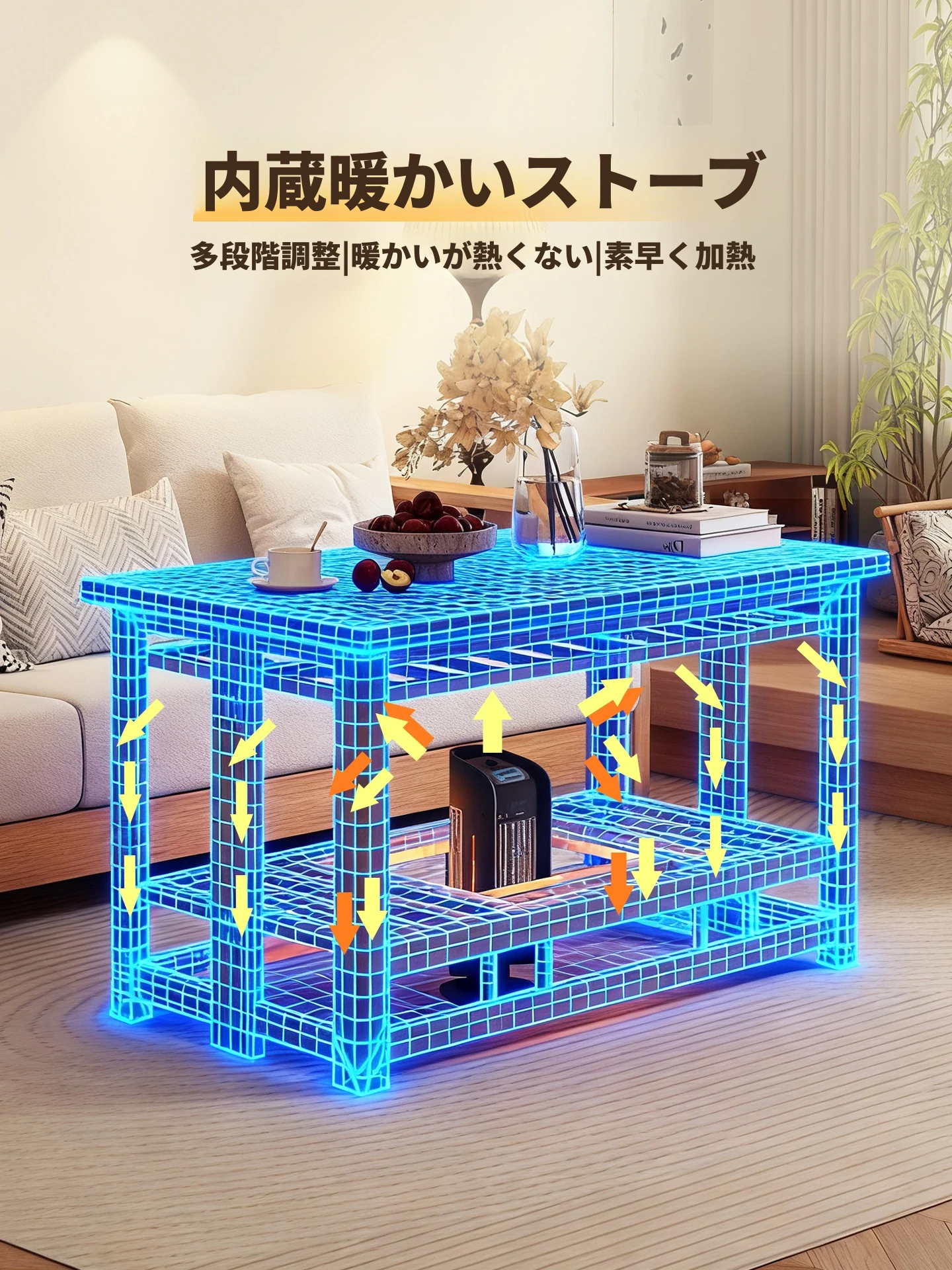 折りたたみ式暖房テーブル!コンパクトな正方形デザインで、小さなリビングにも最適。暖かいひとときを提供する多機能テーブル。簡単に組み立て可能で、食事やお茶の時間をより快適に!