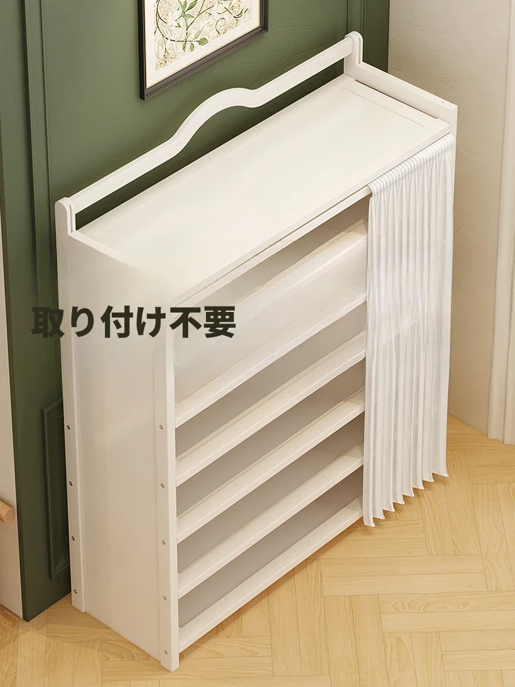 取り付け不要!折りたたみシューラック - 布カーテン付きシンプルな玄関用シューズキャビネット。クリーム風デザインで、多層大容量、通気性抜群のスリムタイプ!おしゃれな玄関を演出します。