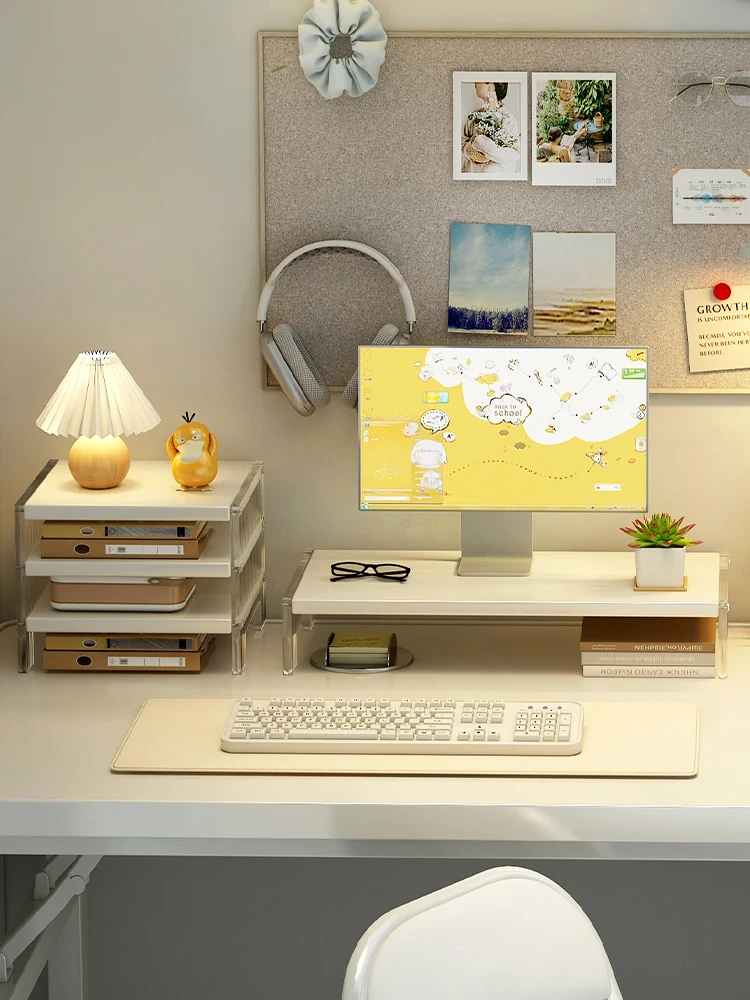 デスクトップモニターを高くするアクリル製スタンド - オフィスや学生寮に最適なデスク改造で快適な作業空間を実現!収納スペースも確保できる、機能的でスタイリッシュなアイテムです。