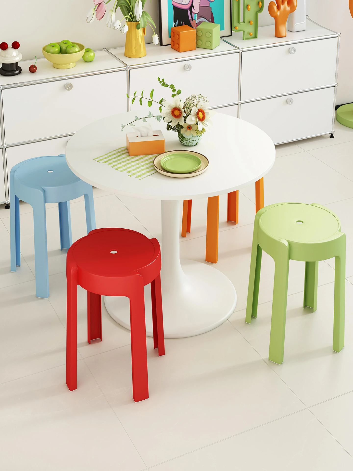 ドーパミンチェア 家庭用 丈夫で耐久性抜群の丸椅子 プラスチック製の風車型スツール スタッカブルなベンチ リビングルームやゲスト用に最適なサブチェア