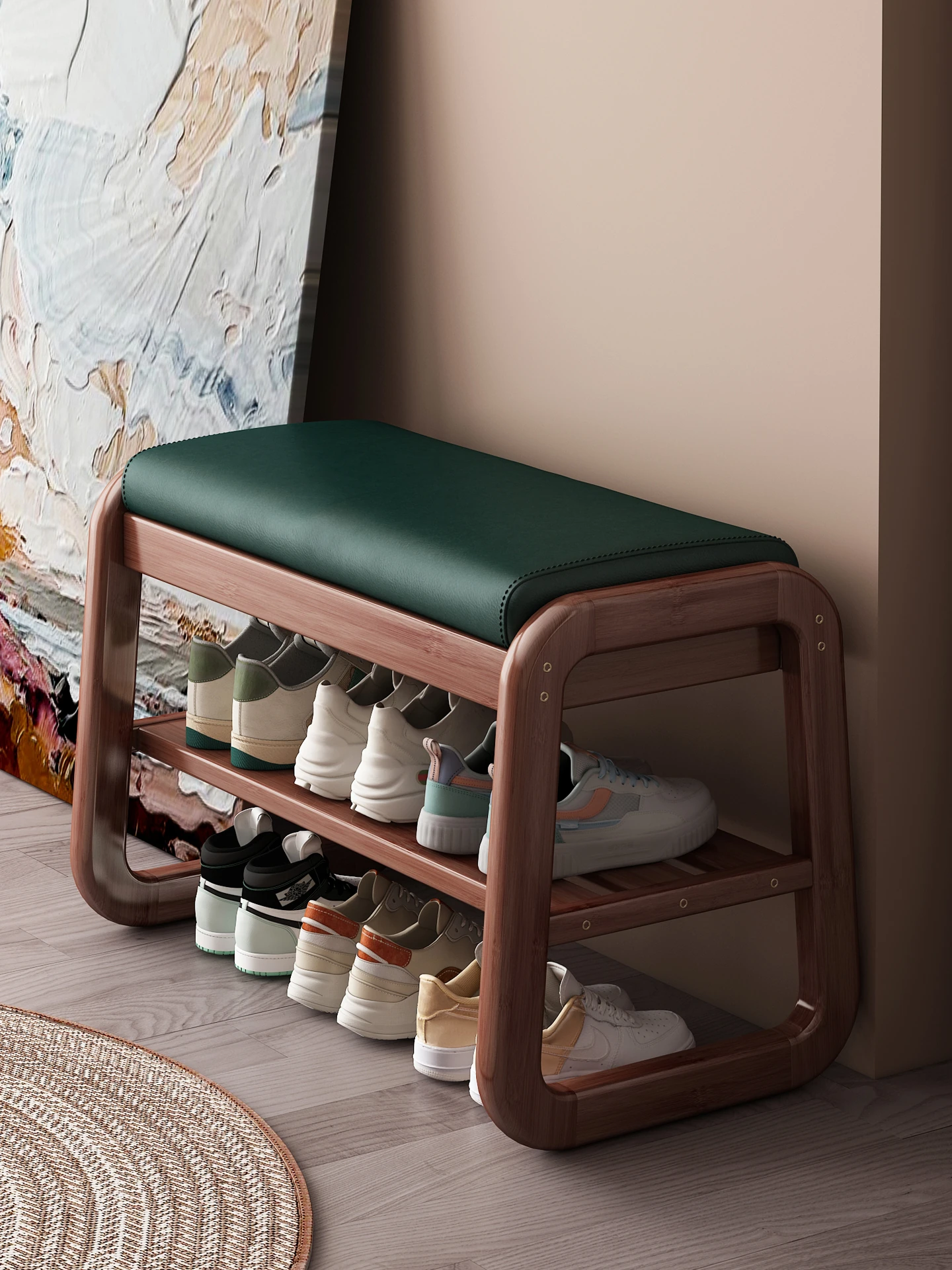 高級感あふれる実木製シューズベンチ - 玄関にぴったりのスリムなデザイン。狭いスペースでも快適に座れる小サイズの靴収納ベンチで、スタイリッシュに靴を履くことができます!
