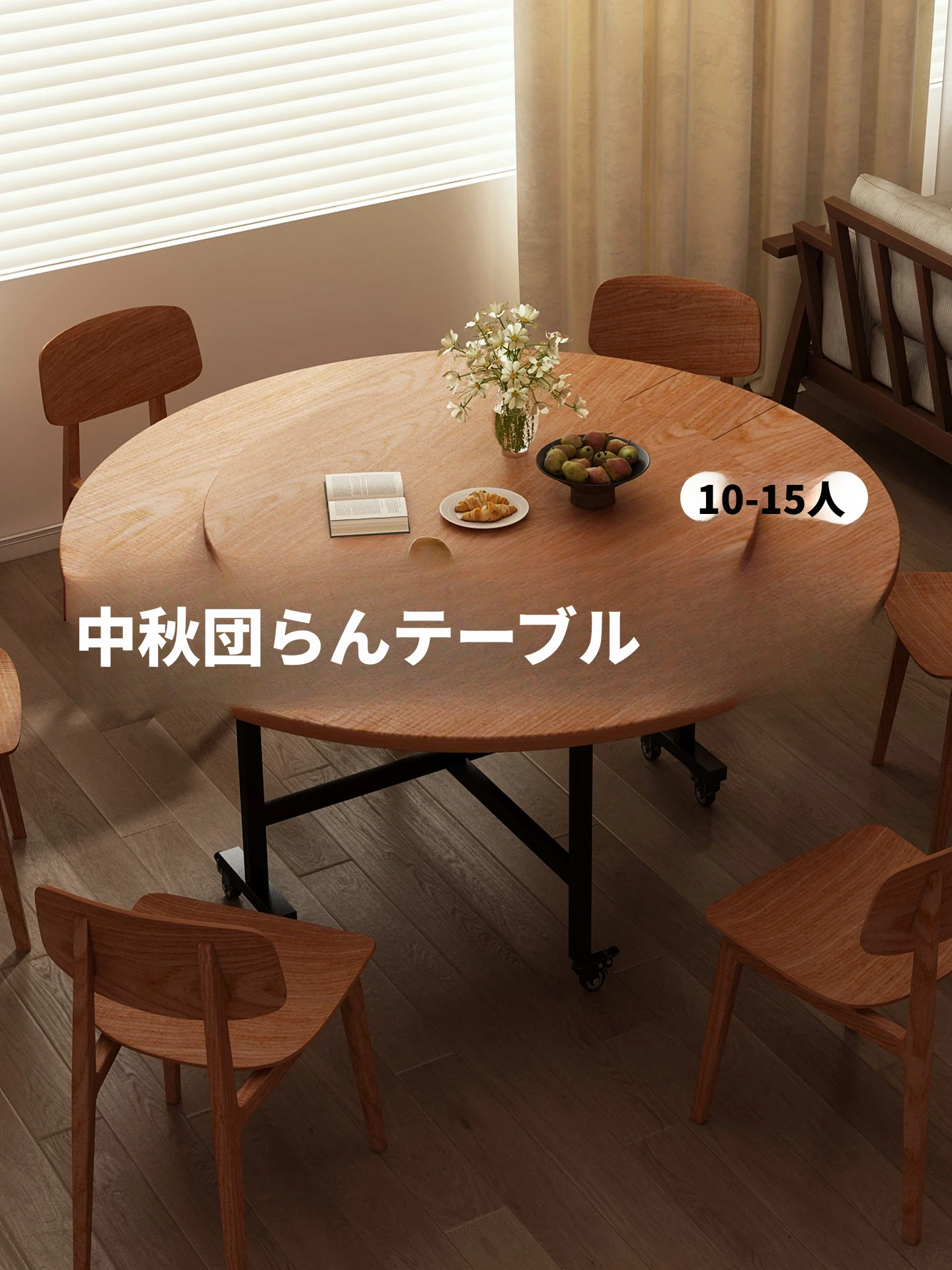 折りたたみ式ダイニングテーブル 小型住宅向け 新型簡易丸テーブル 移動可能 回転盤付き 1〜5人用 円形食卓